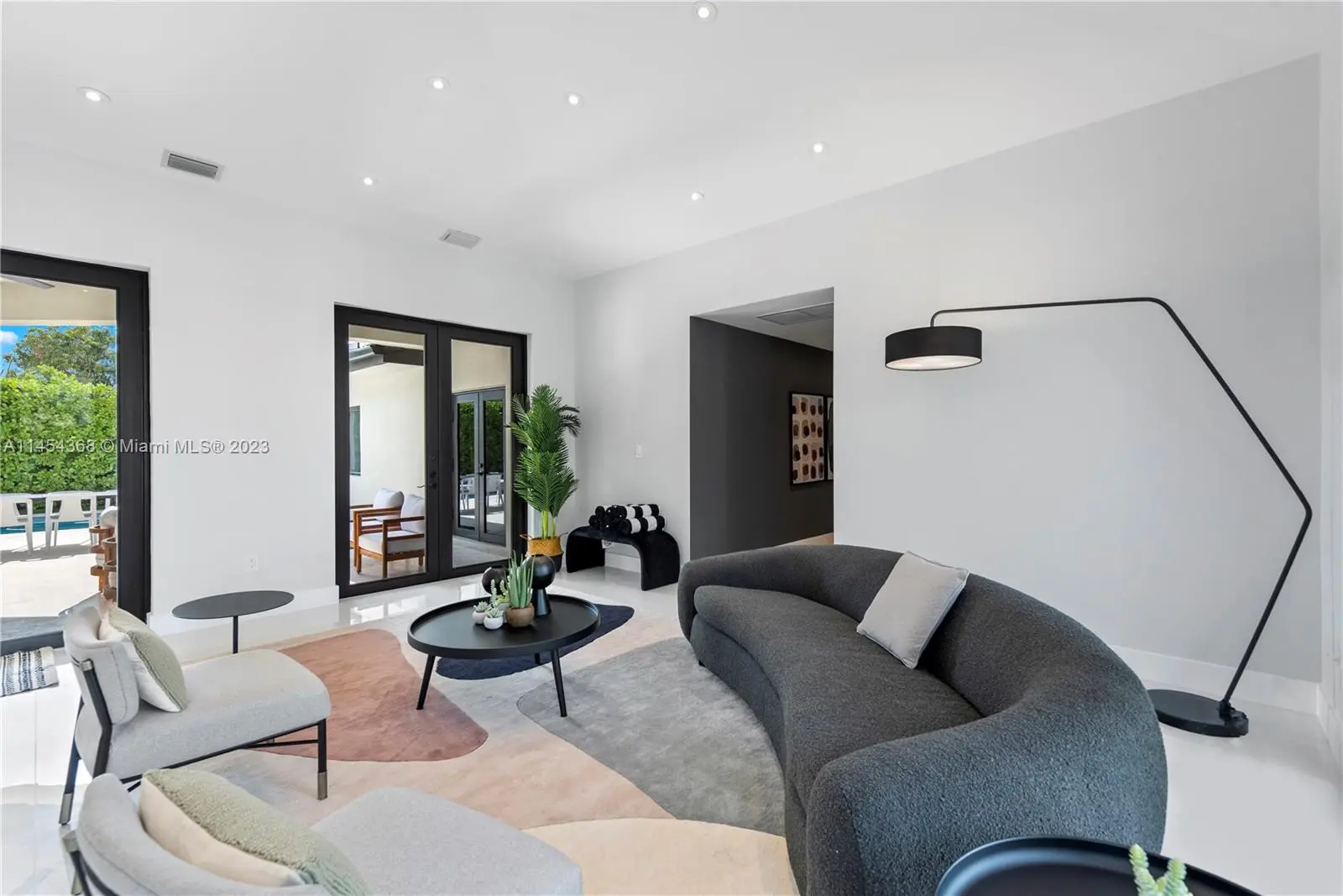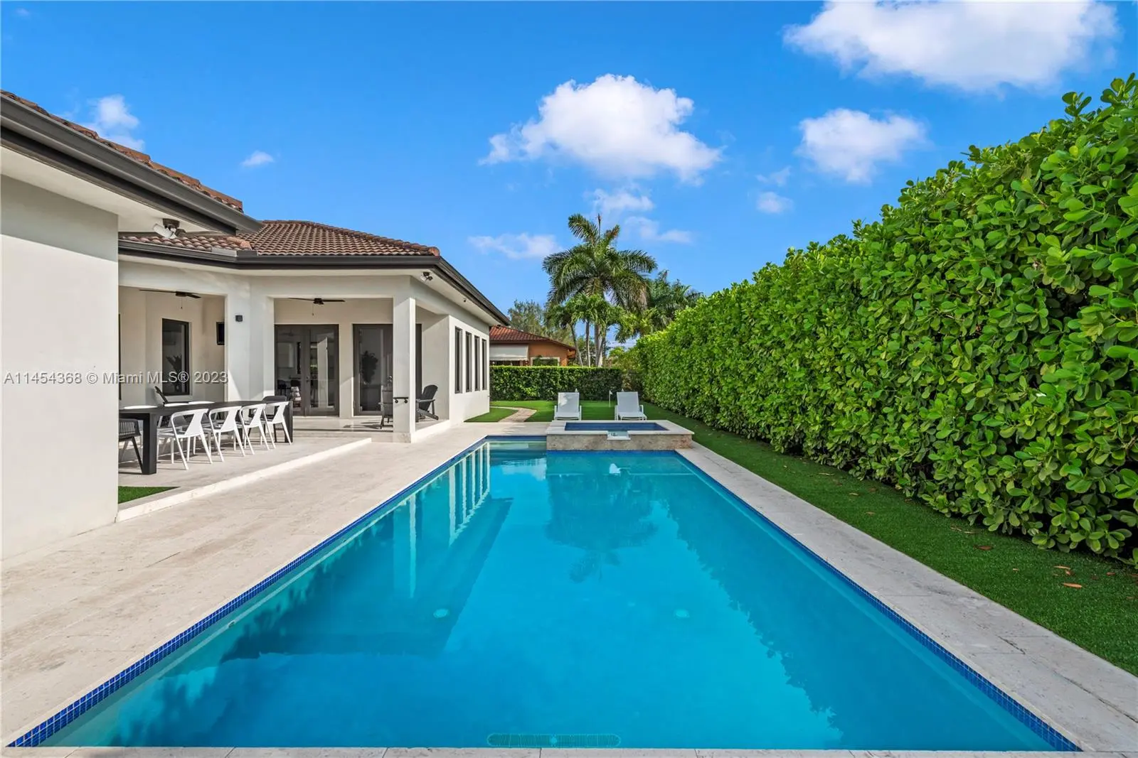 Fully renovated and furnished home with a secure gate. This property exemplifies the concept of "move-in ready." Completely furnished this stunning home is situated on a spacious 15,678 sqft lot. The property features a gated entrance, a large motor court, a port-cochere, open floor plan, impact windows, swimming pool, four bedrooms, four and a half bathrooms, abundant natural light throughout, and it's conveniently located just minutes away from Coral Gables, South Miami, Highway 826, Doral, and more.