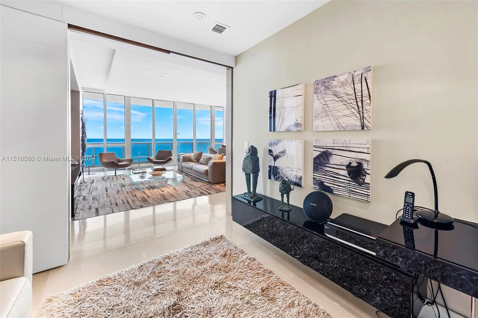 Residence 2801 at exclusive Trump Towers II is a TURN-KEY decorated unit. This is a renovated line 01, 3 BR/3,5 BA plus a DEN, best line in the building, with ocean views from master bedroom, living room to the kitchen. 10' ceilings. High-end finishes, 2768 sq ft interior and 395 sq ft balcony. Private elevator, Miele & Sub-Zero appliances, Italian design kitchen with granite counter tops. Residents enjoy 5-star amenities including gym, health club, spa, pool and restaurant. Private elevator.