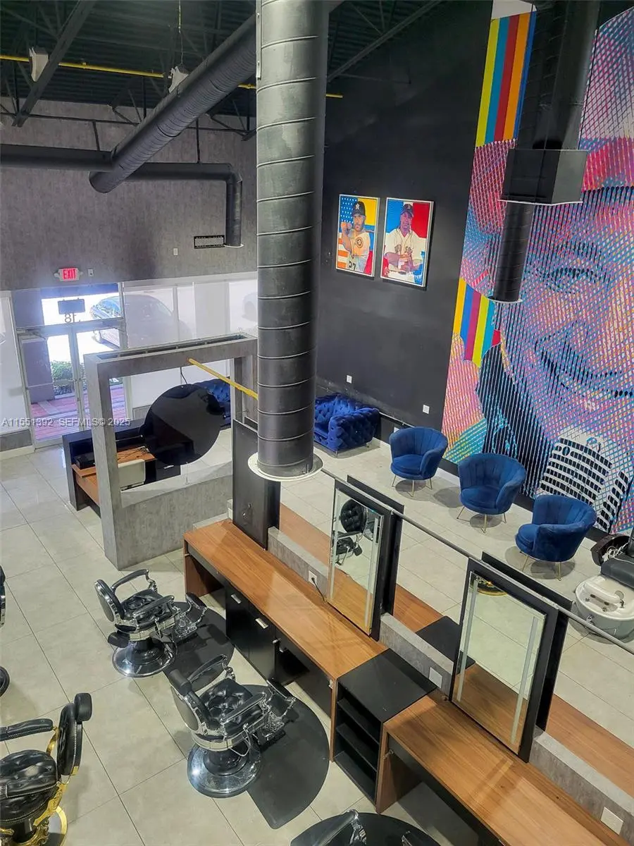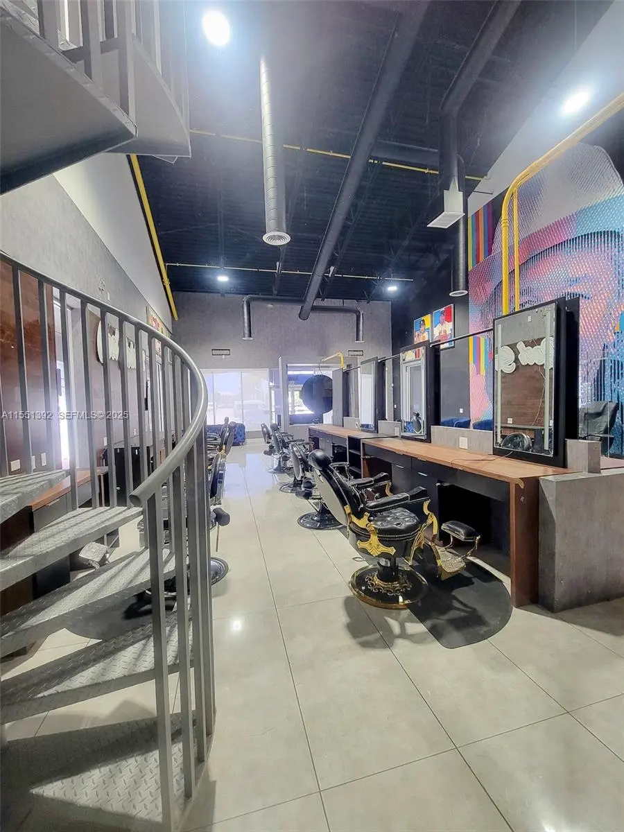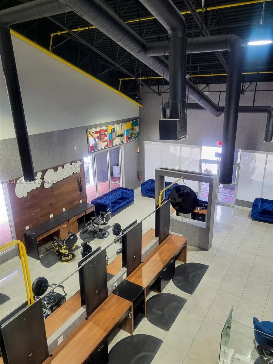 • Size: ±1,635 RSF (plus mezzanine storage, not included in RSF) • Rental Rate: $55.00 per RSF (NNN, per year + Estimated 2025 monthly CAM) • Location: Rear southwest corner with wrap-around storefront. • Frontage & Signage: Visibility along NW 87th Court and side street, with additional signage opportunities on NW 87th Avenue parapet • Layout & Features » One restroom » Private rear room with glass entry » Barber shop furniture included (chairs, stations, mirrors, couches, and more) » Access to storage mezzanine, via a spiral staircase. » Separate AC unit and thermostat » Separate electric meter • Utilities, Expenses & Use: » Tenant responsible for electric, janitorial, telecommunications, and any services not covered by CAM » Ideal for hair salon or related concept (barber shops and nail salons are not permitted)