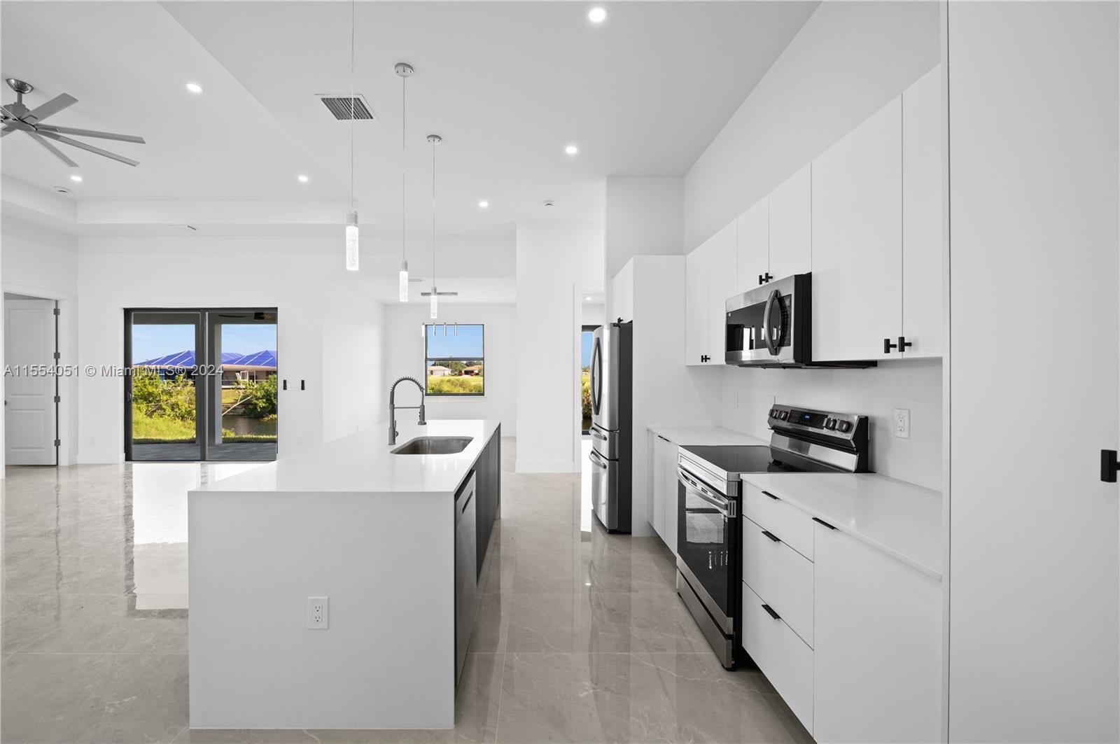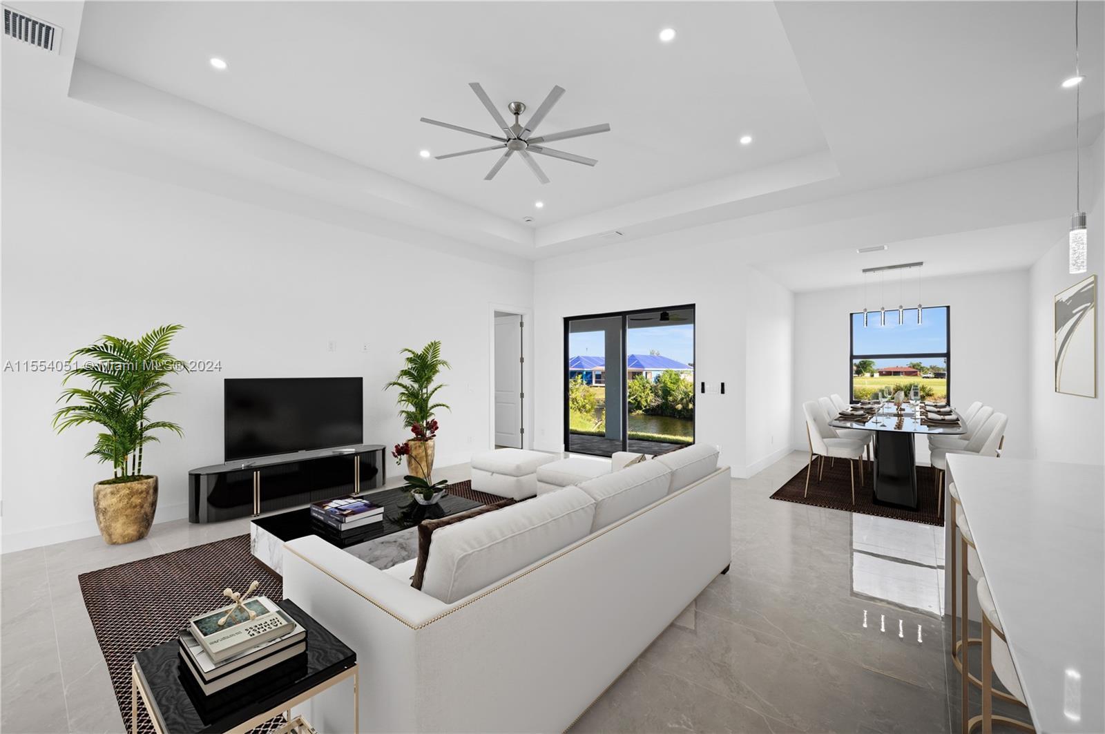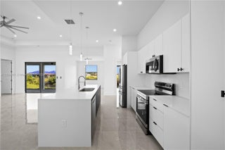 This new construction home in Cape Coral comes with a 5% seller credit that can be used toward closing costs, prepaids, or other allowable buyer expenses—giving you more flexibility at closing. Introducing the "Ella" model, a brand-new construction in Cape Coral, Florida, perfectly situated on a tranquil location backing a lake. This modern beauty offers 3 bedrooms, 2 baths, plus a flex room. The master bedroom boasts his & hers walk-in closets. The master bath exudes luxury with a shower & tub. The open format design features high ceilings & large format tile throughout, creating a spacious & elegant atmosphere. An additional cabana bathroom adds convenience for guests & outdoor entertaining. Step onto the lanai, complete with a wet bar, ideal for hosting gatherings.