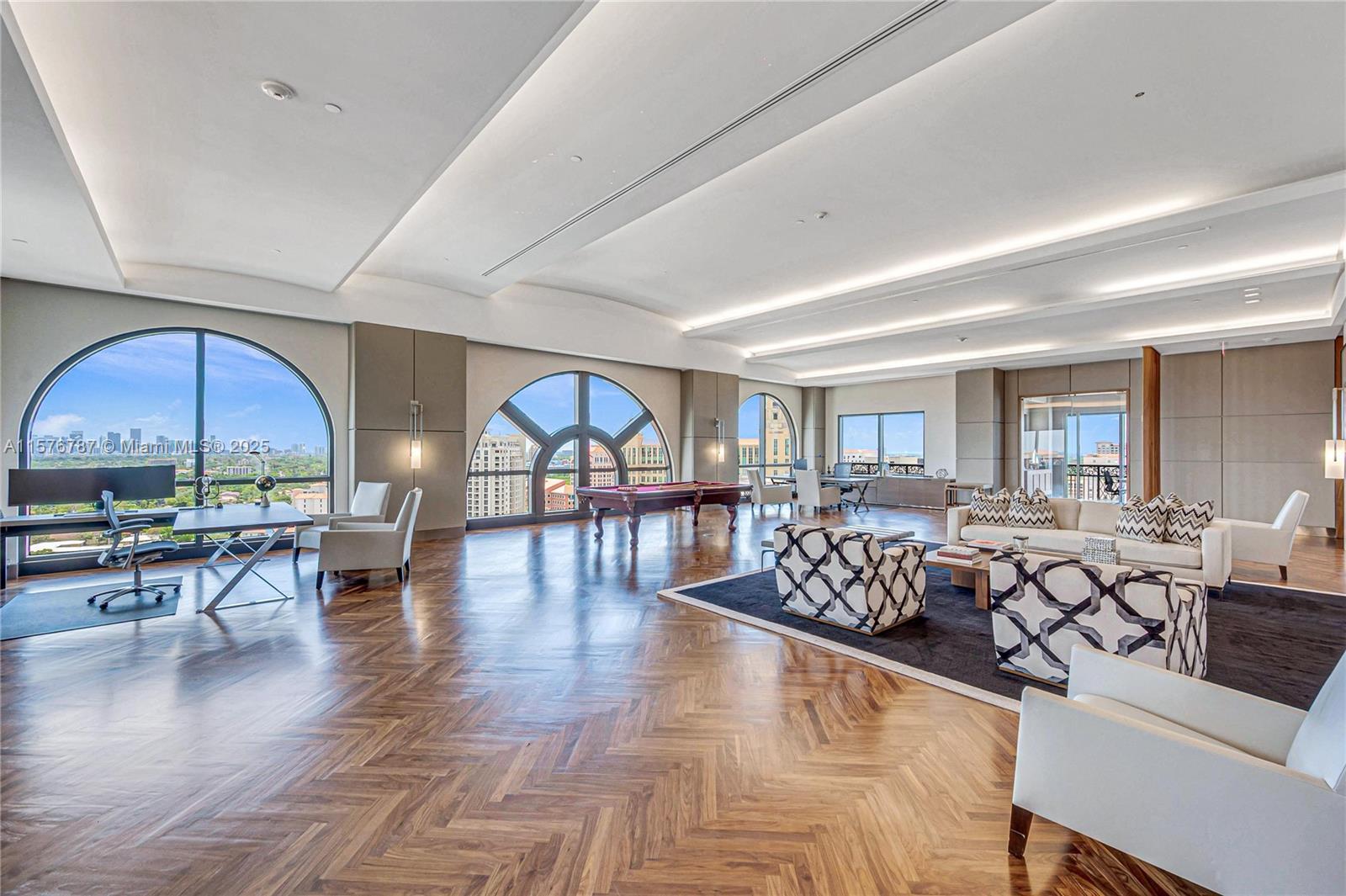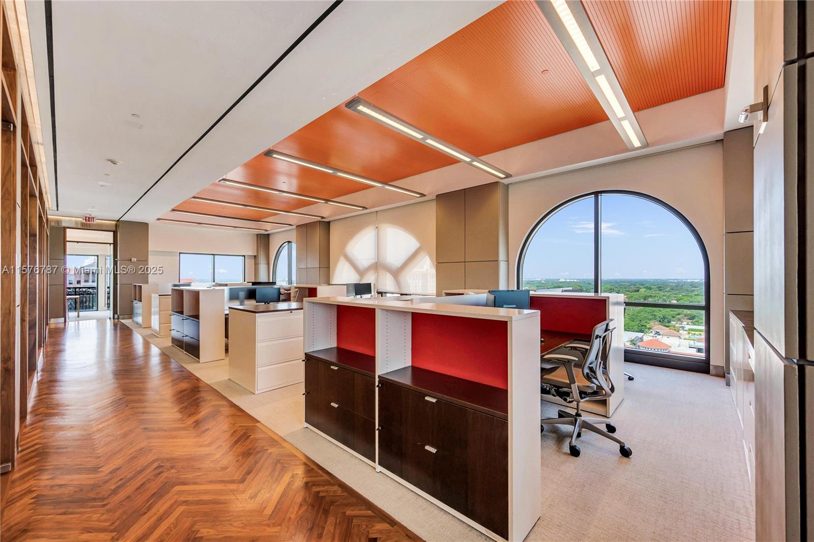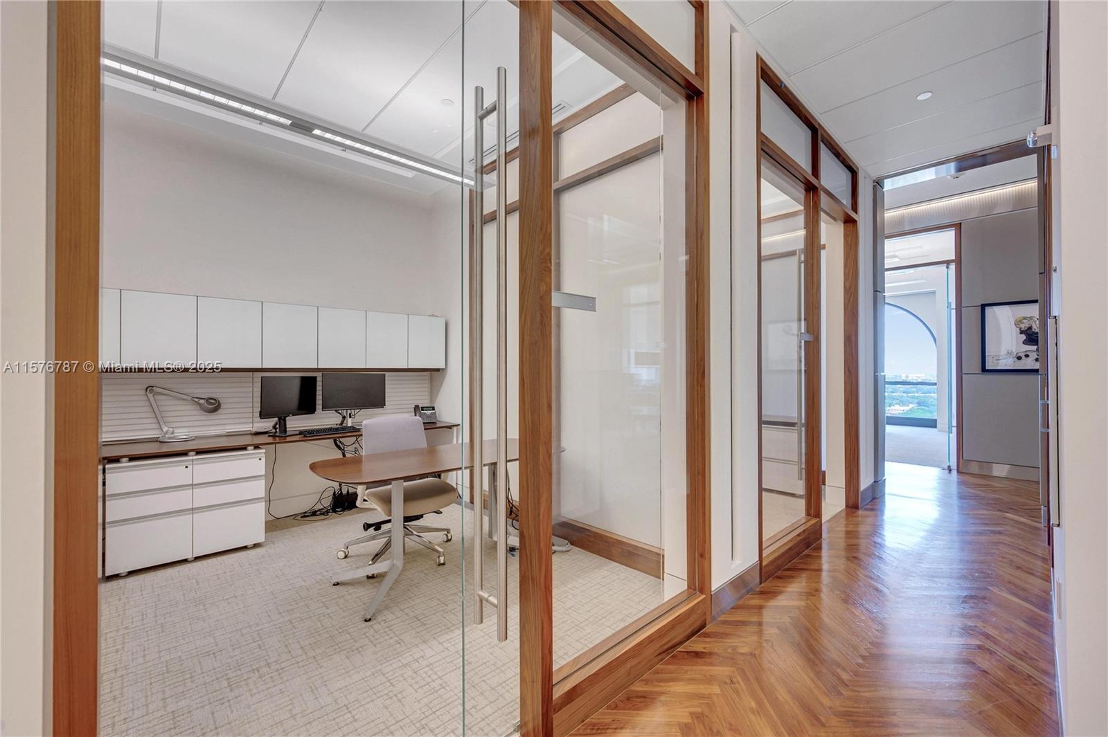 OFFICE & LUXURY AT IT’S FINEST! Empower your family office, law firm, accounting firm, architect’s headquarters & business w/ Penthouse 2’s fully furnished offices in the heart of Coral Gables business district. The sunlight Penthouse encompass 12,576 SQFT of pure luxury & privacy where you will experience a workplace that feels like a home! East side has 17 private offices, main conf rm, 2 large bullpens, 4 bathrms, a full kitchen & dining rm, mail room, package receiving room & IT secure rm. W/ arched windows throughout & 360 degree views of Miami. The west wing holds the private & fully secured executive offices w/ an addit'l 3 LG offices, 2 private conference rooms, 2 baths, 2nd full kitchen & private sitting area. Minutes from Miami and FLL airports, highways,dining, shops & more!