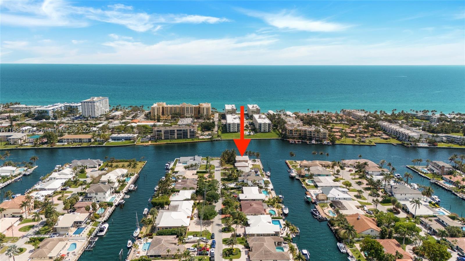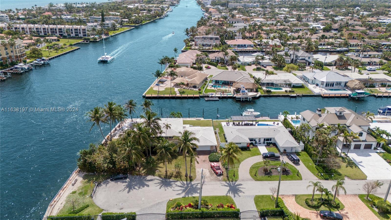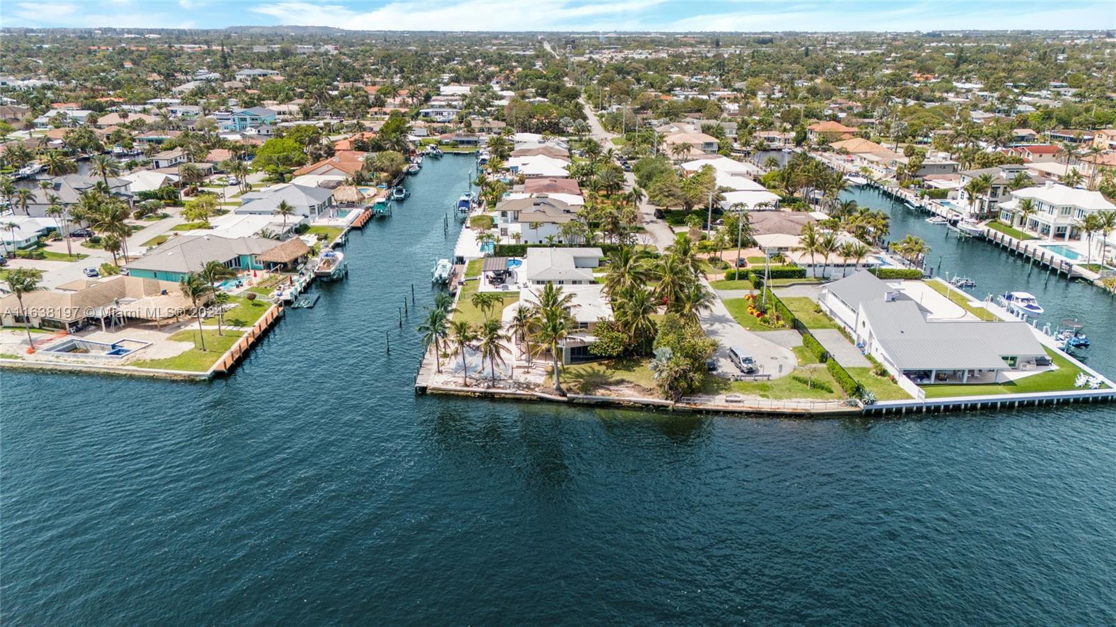 A rare sanctuary in Deerfield Beach offering both seclusion and access to a vibrant coastal lifestyle. Nestled on an oversized southeast point lot with over 230' of waterfront along the Intracoastal Waterway, this property offers unparalleled privacy and tranquility, attracting marine life such as dolphins and manatees. The existing 4-bed, 3.5-bath home is being sold "as is," presenting a prime opportunity for the discerning buyer to build their dream waterfront estate. With 14,506 sqft of land, endless possibilities for luxurious living awaits. Enjoy convenient access to nearby attractions, including pristine beaches, gourmet dining, and shopping. Don't miss your chance to own one of the few remaining large, direct Intracoastal Southeast exposure properties in this coveted area.
