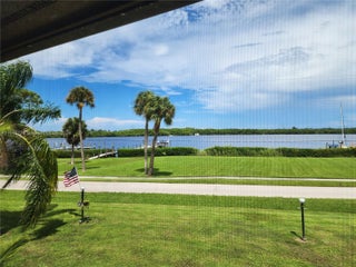 Welcome to Riverfront house! Living in Palm City Bay in luxury and either walk or ride your bike to your favorite local Restaurants, shops, and markets they have to offer here in Palm Bay! Community is pet friendly. Enjoy the beautiful views of the Bay from your private balcony. This 2nd floor end unit condo with the largest floorplan, has been customized with an entertaining bar w/custom lighting. There are 2 huge beds/ 2 full baths with over 1,500 sq.ft of living space. Unit has impact windows & sliders! You'll enjoy breathtaking sunset & wide river views from your master bed. If you think that's not enough, bring your boat to your privately owned dock slip at the community dock (slip accommodates up to a 64 ft. boat, lift will be needed). Assoc. working in renewing all buildings