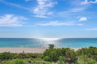 Beautiful DIRECT OCEAN views from this unique 2/2 corner unit located in the elegant beachfront condo Oceanside Plaza, designed by renowned architect Morris Lapidus. This exquisitely remodeled unit has an open floor plan with plenty natural light, a modern white kitchen, stainless steel appliances, granite countertops, sea shell stone floors, custom made closets, new updated bathrooms, new A/C units, lighting, and more. Picture perfect sunrises can be enjoyed from the private, large terrace, or walk to the sandy beach and swim in the ocean. The resort style offered by this building includes a heated pool, beach service, spa, jacuzzi, gym, on-site restaurant LOLA, and much more. Unit is sold unfurnished, furniture is for sale. Easy to show, see broker remarks.