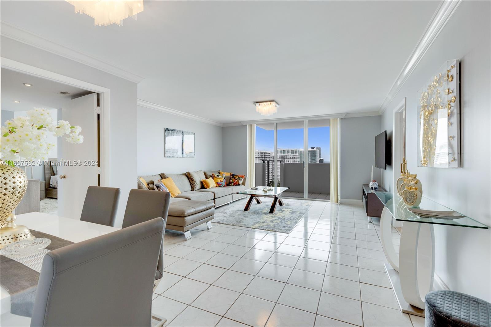 Welcome to your dream apartment in Aventura! This stunning 2-bedroom, 2-bathroom unit offers breathtaking water views that will captivate you from the moment you enter. The open-concept living area features comfortable, modern furnishings and large floor-to-ceiling windows that fill the space with natural light and panoramic water views. The gourmet kitchen boasts sleek appliances and elegant cabinetry, perfect for enjoying morning coffee. The spacious primary bedroom is a serene retreat with a luxurious en-suite bathroom, while the second bedroom is ideal for guests or as a home office, with convenient access to a stylish second bathroom. Relax on your private balcony and embrace the vibrant lifestyle of Aventura!