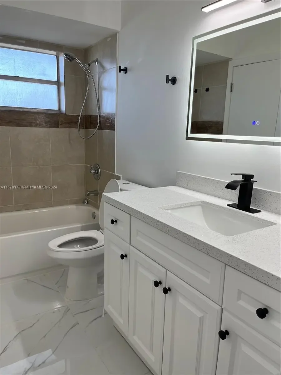 Just steps from Fort Lauderdale, the unit features one bedroom and one bathroom, along with a charming Florida Room that can be used as an office or a second bedroom. Remodeled with high-end finishes, it boasts elegant porcelain tile floors and white quartz countertops in the kitchen and bathroom. The air conditioning is brand new, installed in late 2023. Located just 5 minutes from Florida Medical Center, 17 minutes from Sawgrass Mills, and 20 minutes from the beach, this apartment offers the convenience of being close to major supermarket chains, restaurants, and shopping plazas. Located near access points, making travel convenient. The condo also features numerous amenities, including a sauna, pools, barbecue area, clubhouse, gym, billiard room, and plenty of green recreational space