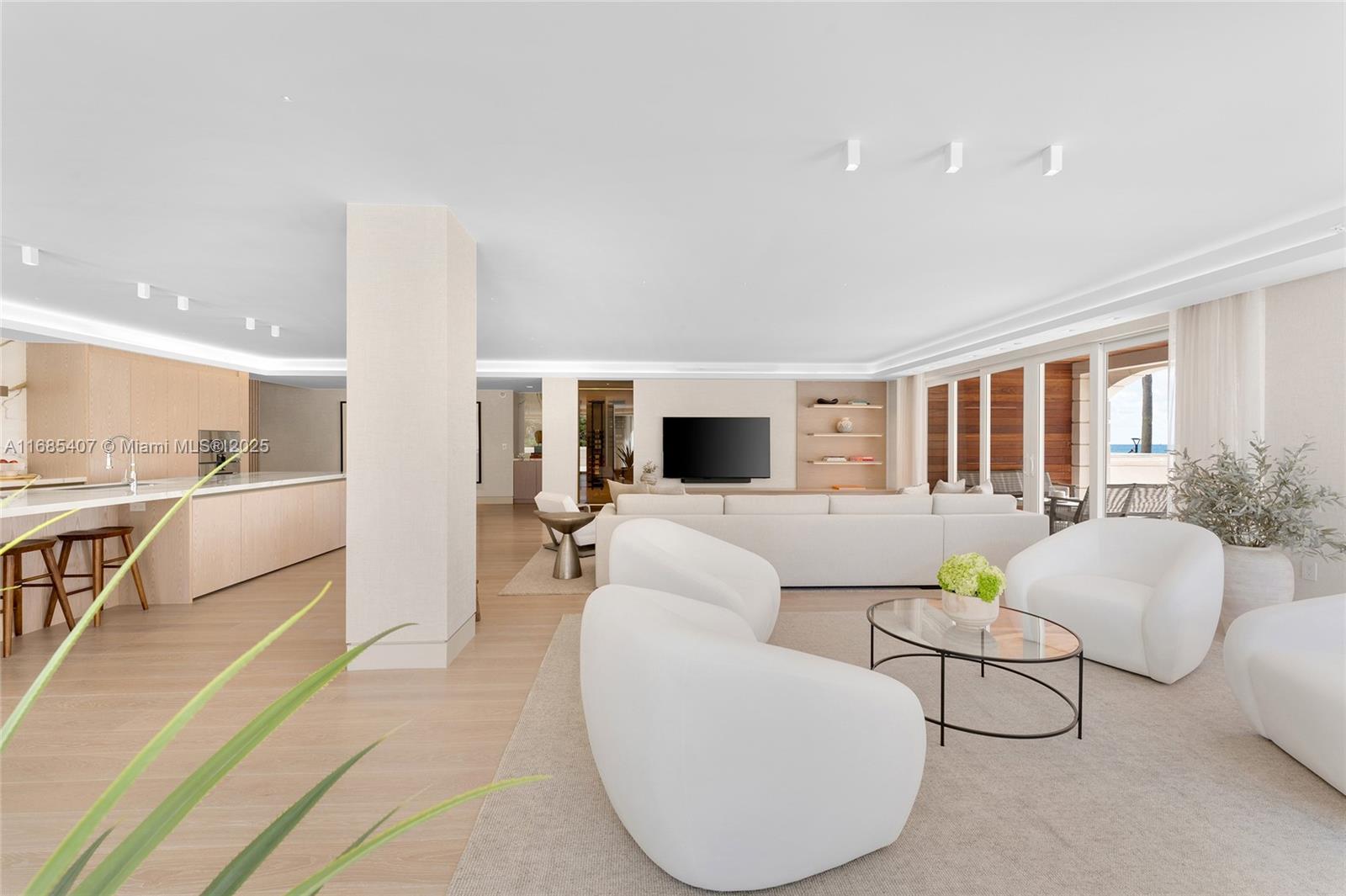 Discover the epitome of luxury living in this exquisite ground floor unit on Fisher Island, perfectly situated steps away from the pool, beach, scenic walking paths & Atlantic Ocean. Spanning 4,039 SF, this meticulously remodeled home features 4BR/4.5BA with an expansive open living space and a 4,000 SF incredible private wraparound terrace offering stunning direct views of the ocean. This smart house boasts Listone Girdano wide plank wood flooring, custom millwork, Dornbracht fixtures & a wine room. The custom Ornare kitchen features Gaggenau appliances & a large center island w/ seating. The principal suite features a seating area, fireplace, and a spa-like bathroom with a soaking tub & rain shower. This exceptional unit truly captures the essence of Fisher Island's luxurious lifestyle.