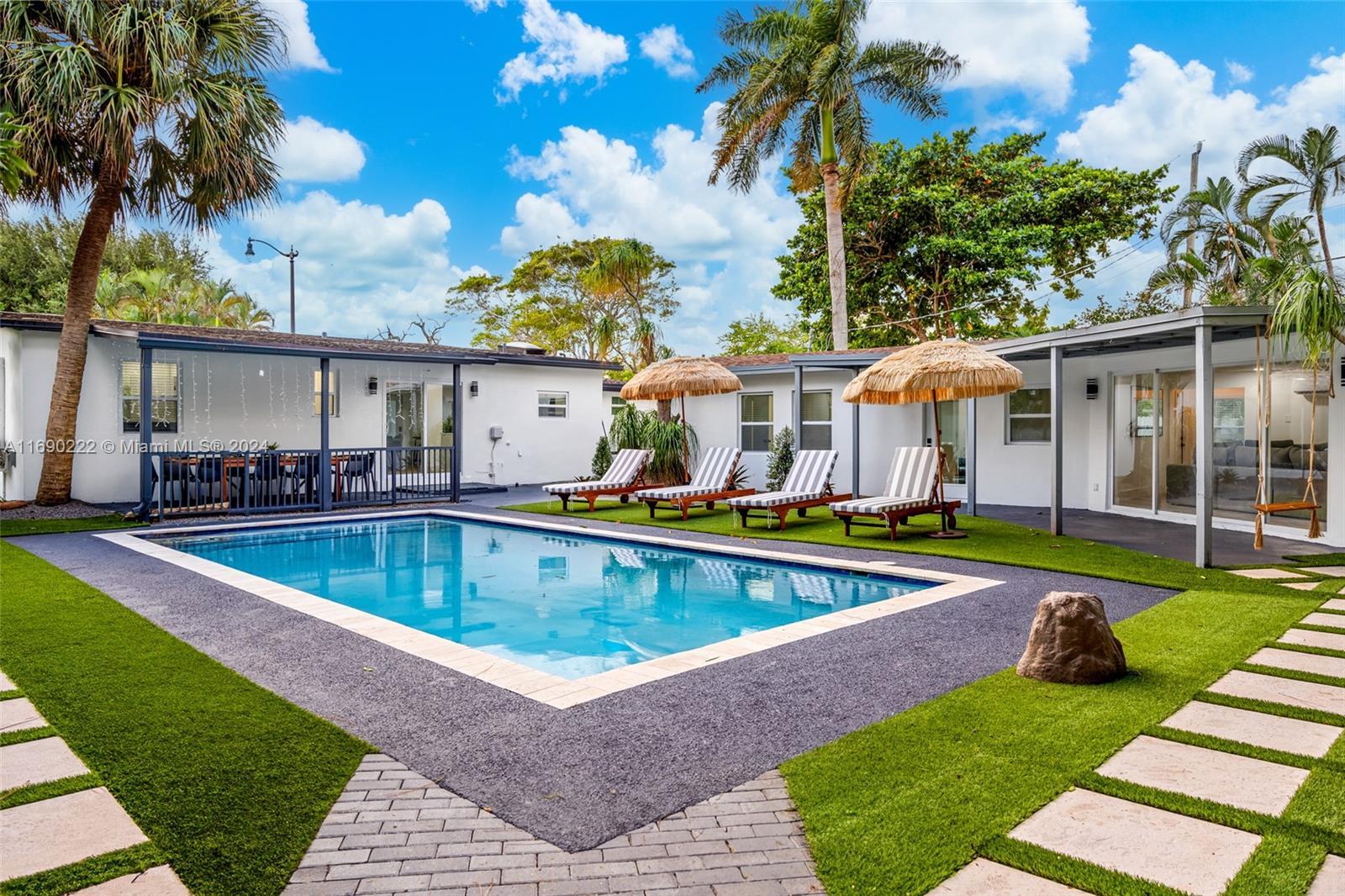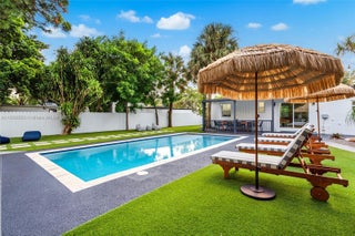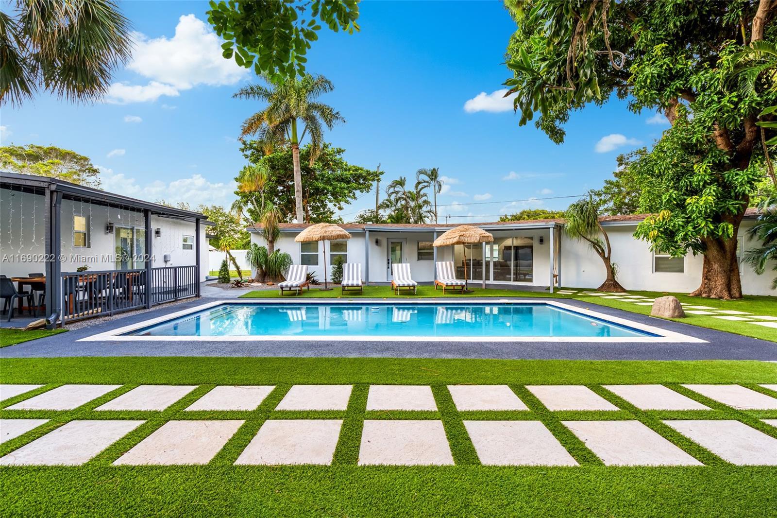 Welcome to your dream home in beautiful Pompano Beach! This meticulously maintained property has 2 housing structures both houses have 3 beds and 2 bathrooms. The 2nd house boast new roof from 2023 with (10 year warranty), both houses fully renovated. Stay cool with all new Mini split AC units, brand-new impact windows, all new appliances, huge 15k sqft lot with fully redone pool with new pump system, Artificial turf in back yard, newly laid sod on side yard. A extra game room in the back, as well as a tool shed. Perfectly situated in Pompano Beach, you're just moments away from Deerfield Beach, Lighthouse Point, pristine beaches, an array of restaurants, shopping, and vibrant bars. This home is a perfect for a larger family that needs space or investors looking for turnkey money maker.