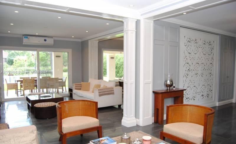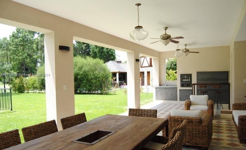 French-Style Home for Sale on a Central Golf Lot in Village Golf & Tennis Country Club. 3 Beds 3 Baths. Reception Hall w/ dual circulation leading to the living room and kitchen, Under-stair storage space and guest closet, Spacious L-shaped living-dining room w/ large windows overlooking the garden, Sliding double-leaf carpentry door leading to the kitchen; Kitchen w/ cabinetry, pantry space, and a support/breakfast bar, Laundry room w/ exterior access to the garage, Staff quarters and bathroom w/ shower, Porcelain tile floors throughout. Access door w/ foldable staircase to the attic, Master suite with bathroom and walk-in closet. Access to a terrace w/ views of the golf course and exterior. Large covered patio. Built-in Tromen brand grill and oven. Sink and support bar. Garden w/ pool