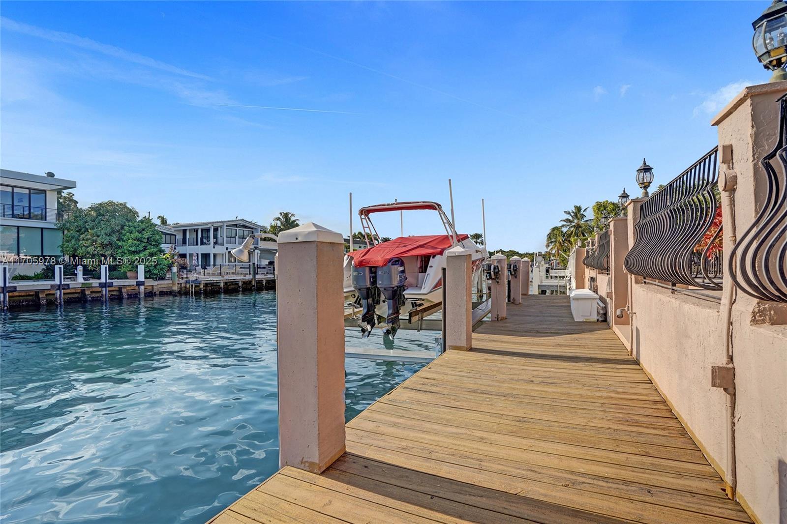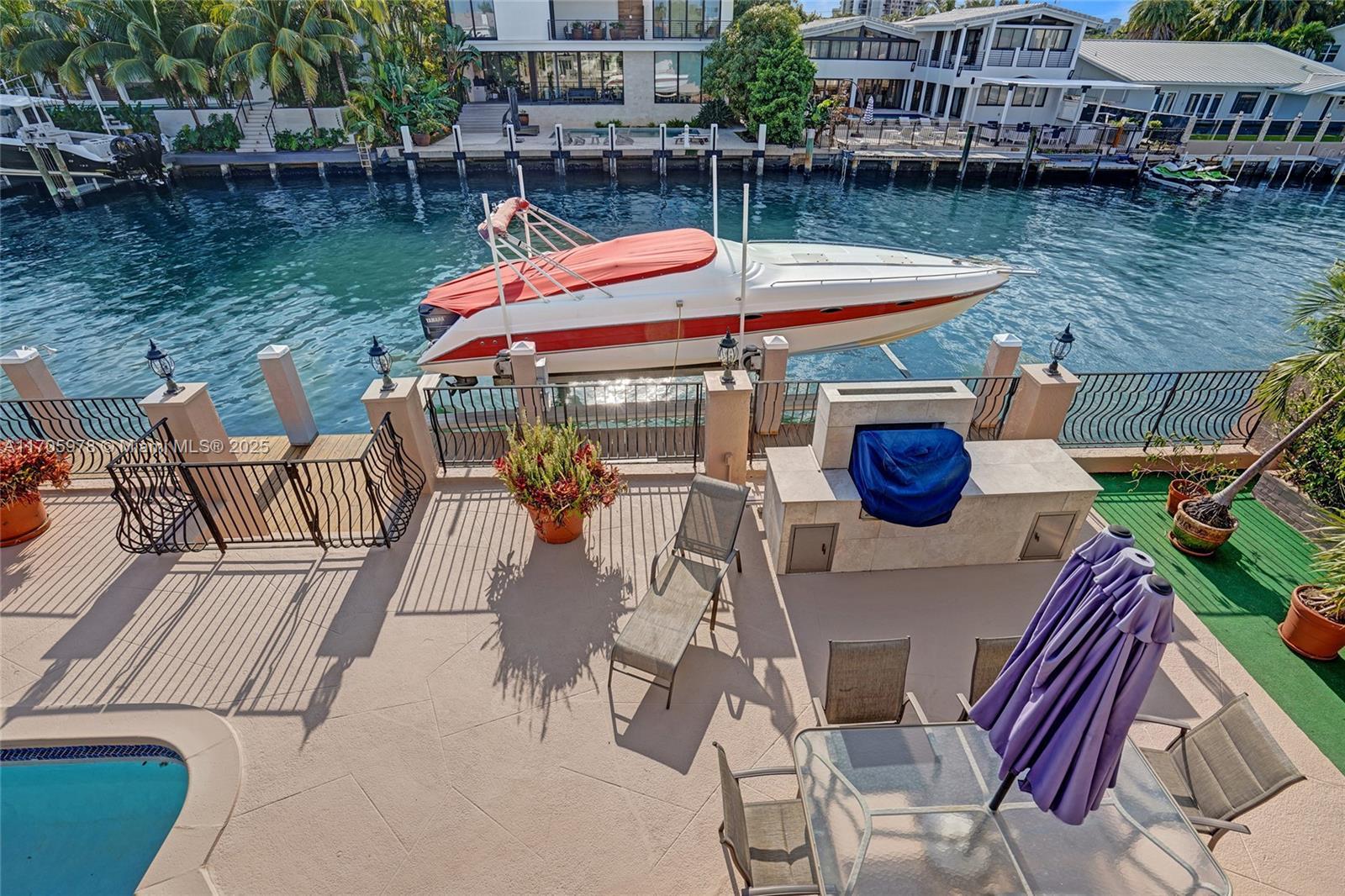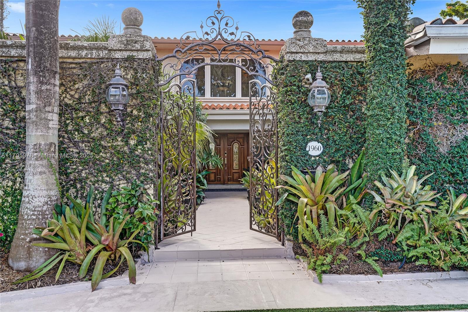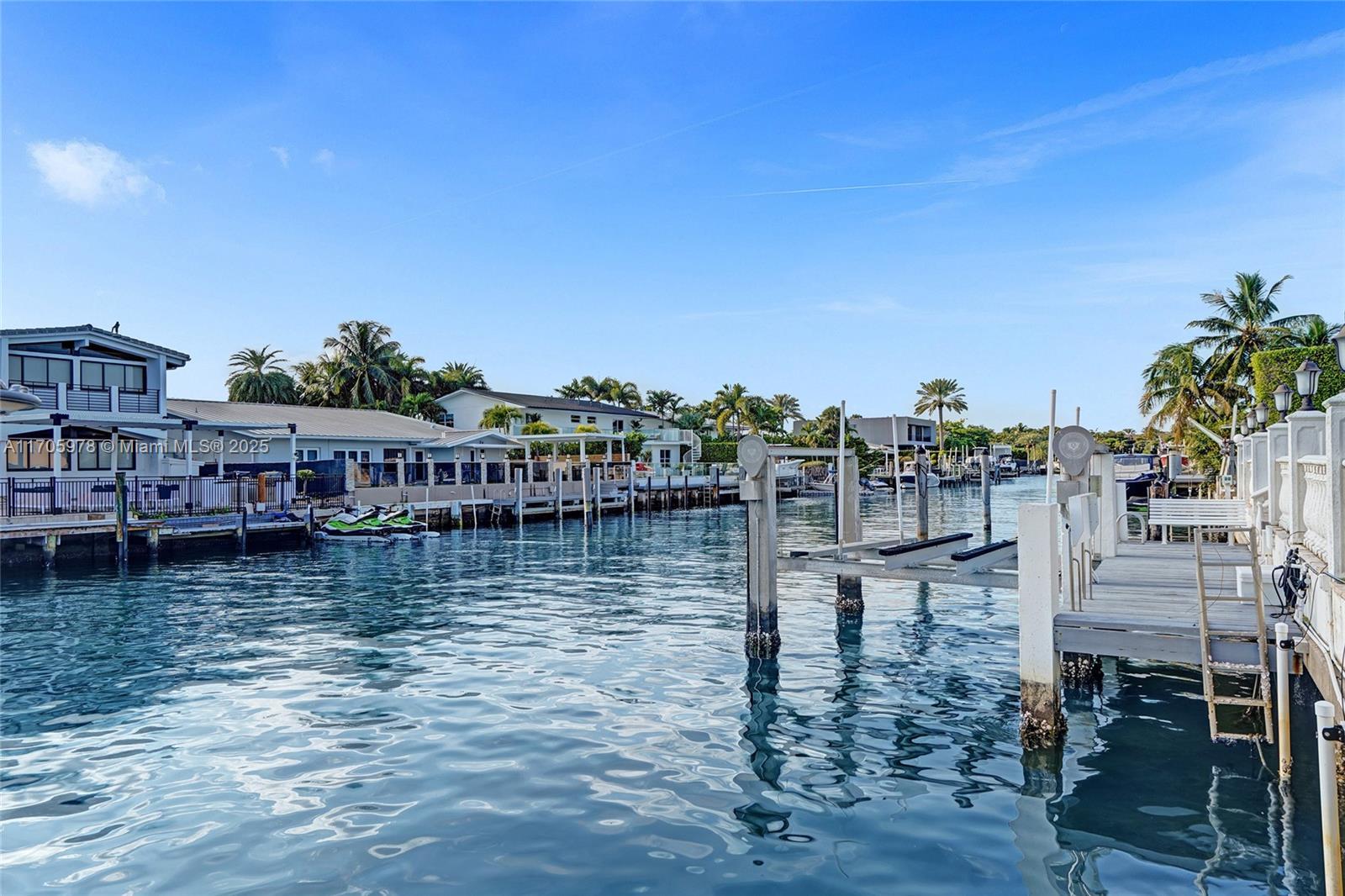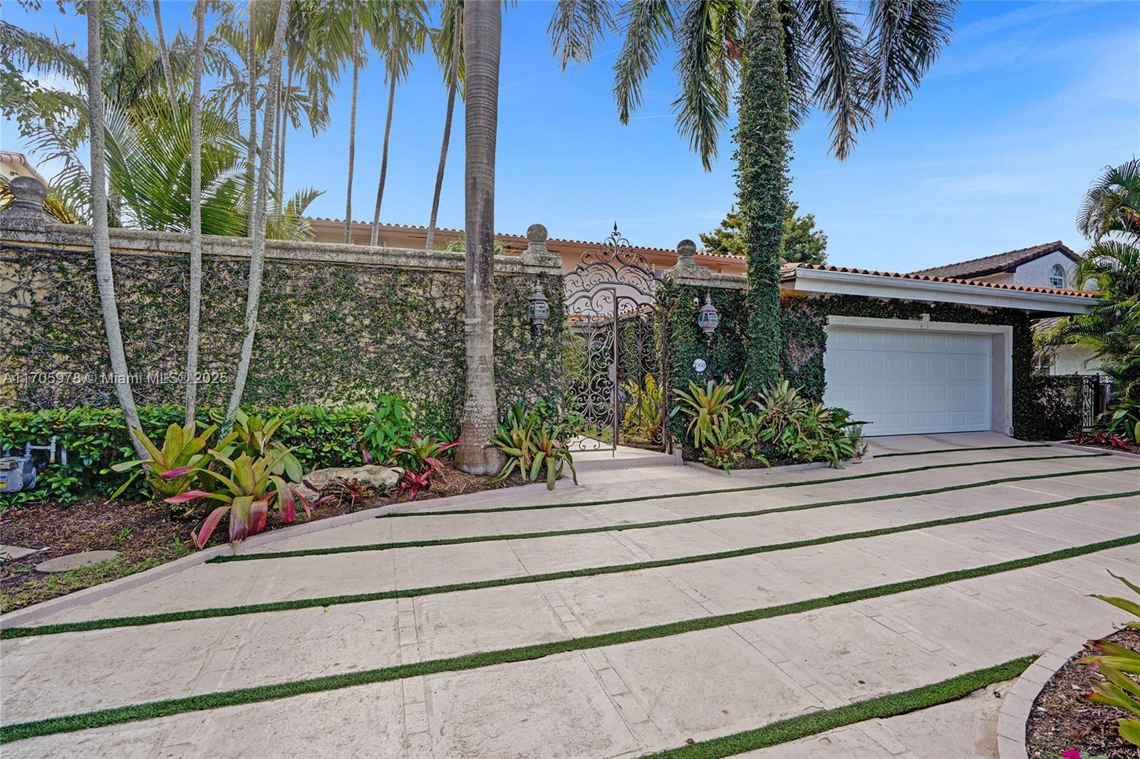 One of a kind with Bay views!!!! Located in the gated, police-protected community of Sans Souci Estates, this 2-story concrete home offers breathtaking open bay views and an extra-wide deep-water canal with ocean access just minutes away. Perfect for larger boats, it features a 20,000-lb boat lift and a sprawling outdoor entertaining area with a pool, lush landscaping, and up-lighting. Inside, enjoy 5BR/4BA, soaring ceilings, marble floors, and natural light throughout. The oversized master suite boasts one of the largest layouts in the area, a spa-like bath, and a huge private terrace overlooking the bay. The air-conditioned 2-car garage doubles as flexible space. This premium property shines day and night, offering luxury waterfront living at its finest.