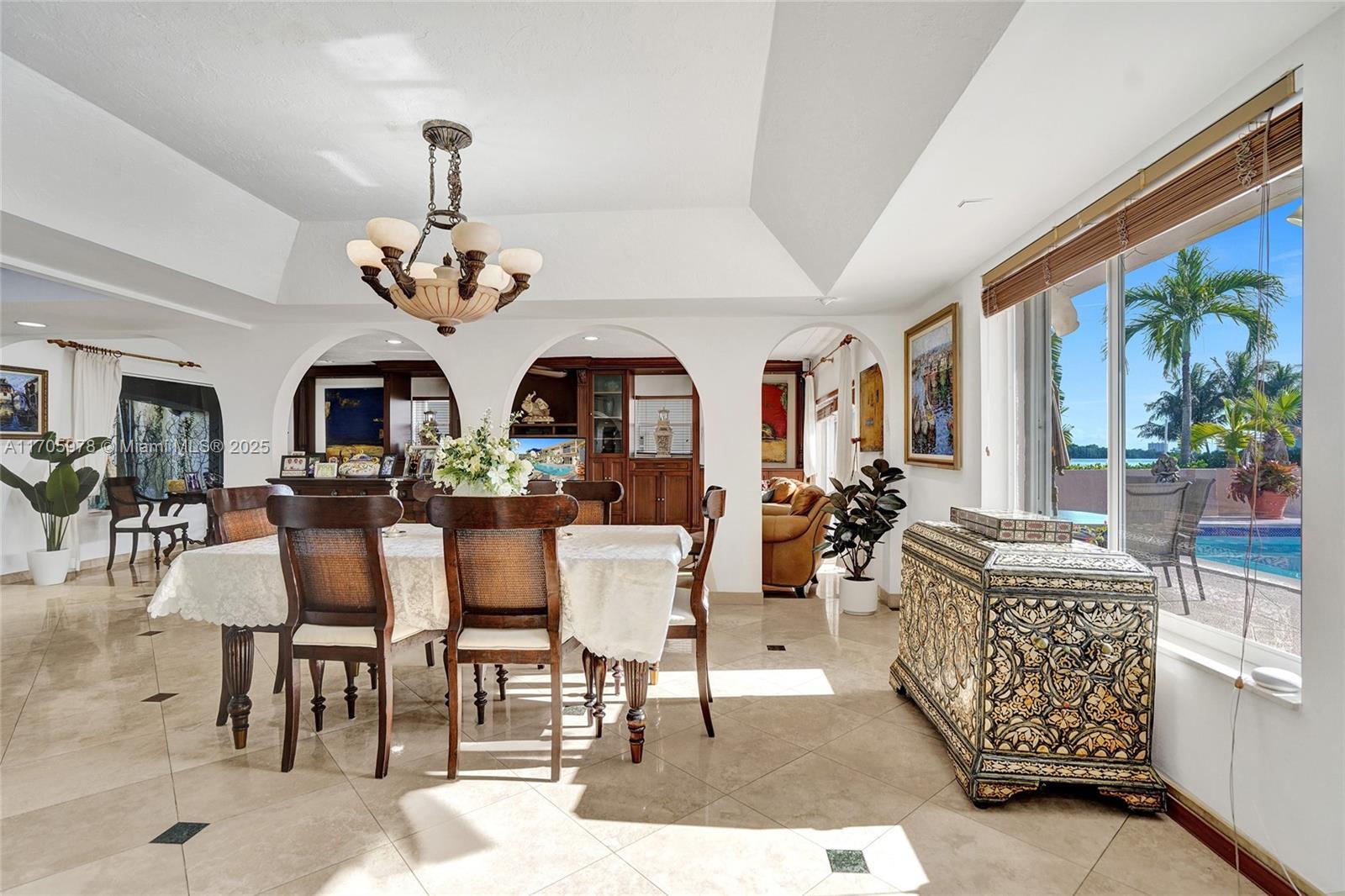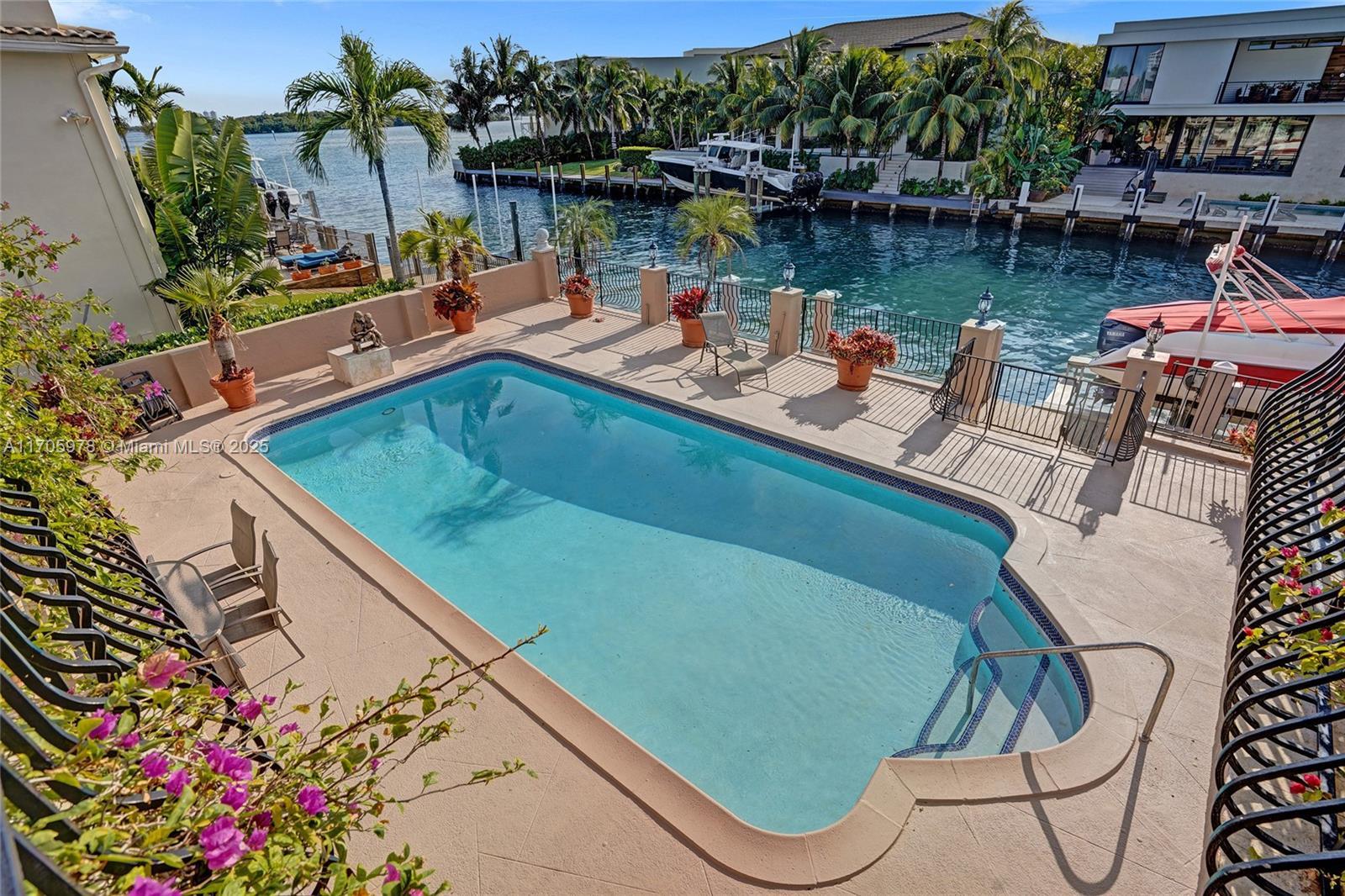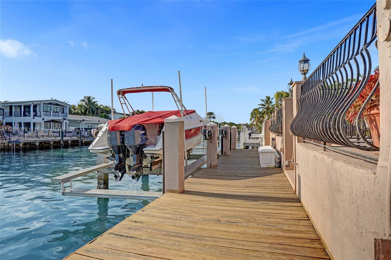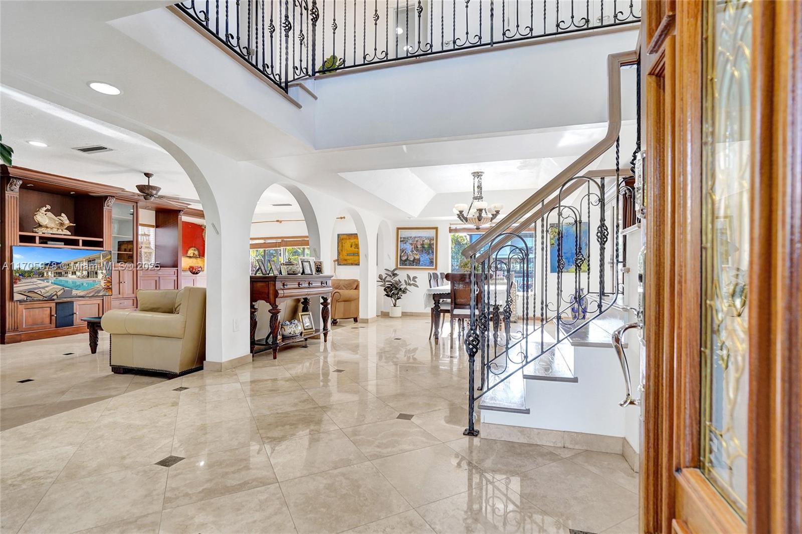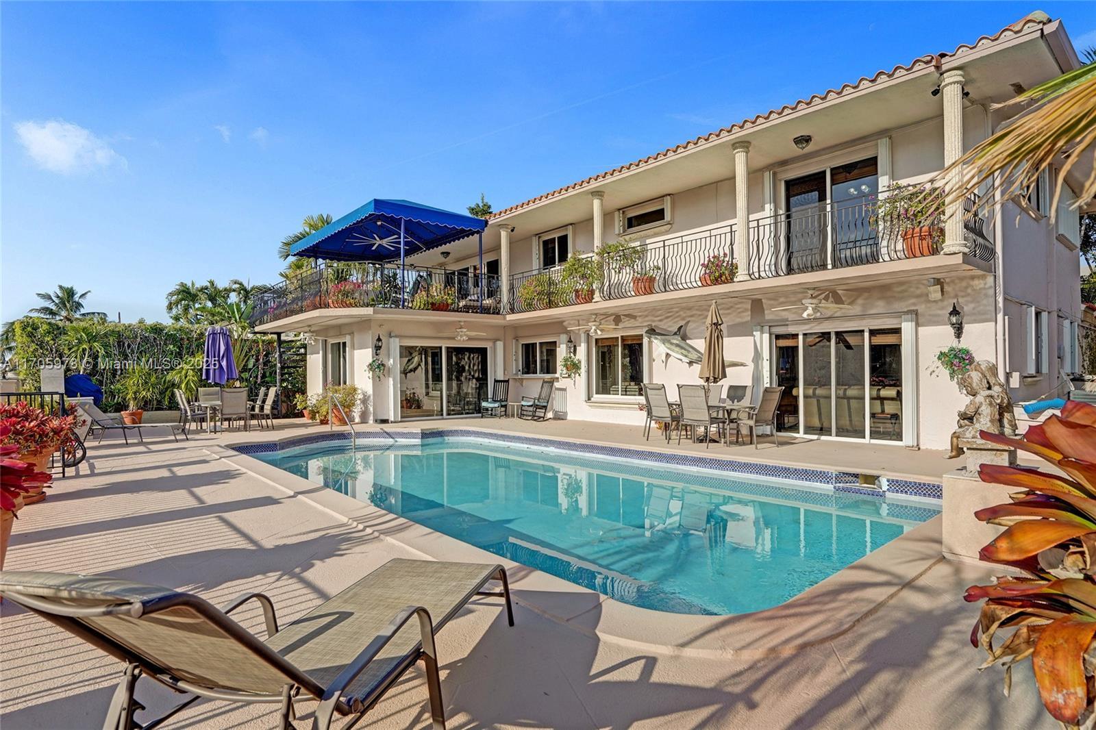 One of a kind with Bay views!!!! Located in the gated, police-protected community of Sans Souci Estates, this 2-story concrete home offers breathtaking open bay views and an extra-wide deep-water canal with ocean access just minutes away. Perfect for larger boats, it features a 20,000-lb boat lift and a sprawling outdoor entertaining area with a pool, lush landscaping, and up-lighting. Inside, enjoy 5BR/4BA, soaring ceilings, marble floors, and natural light throughout. The oversized master suite boasts one of the largest layouts in the area, a spa-like bath, and a huge private terrace overlooking the bay. The air-conditioned 2-car garage doubles as flexible space. This premium property shines day and night, offering luxury waterfront living at its finest.
