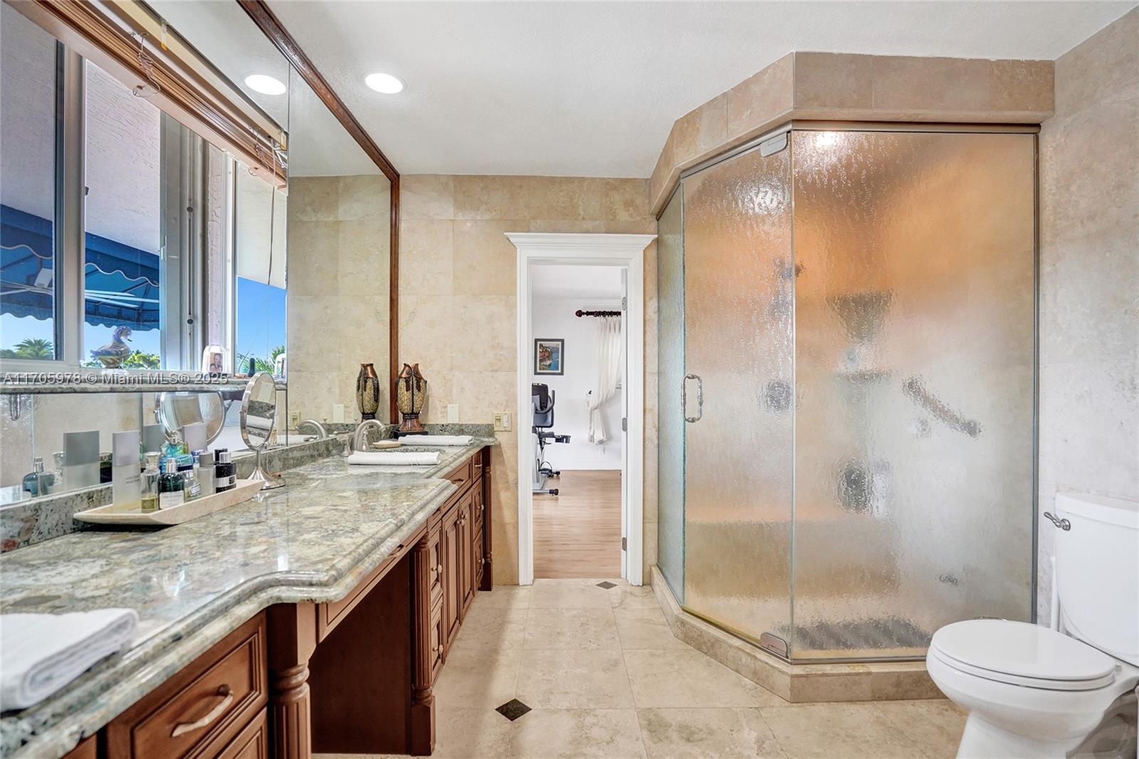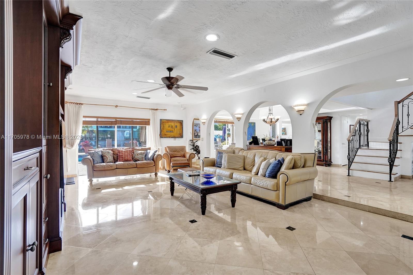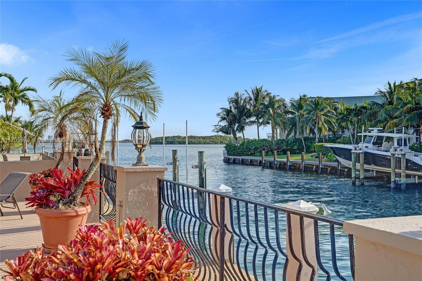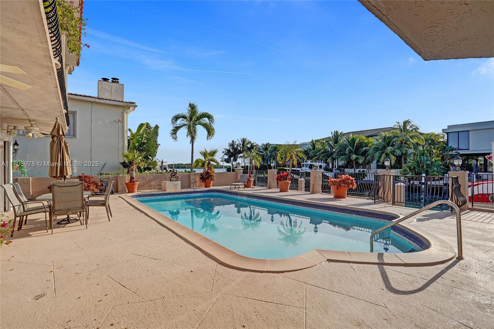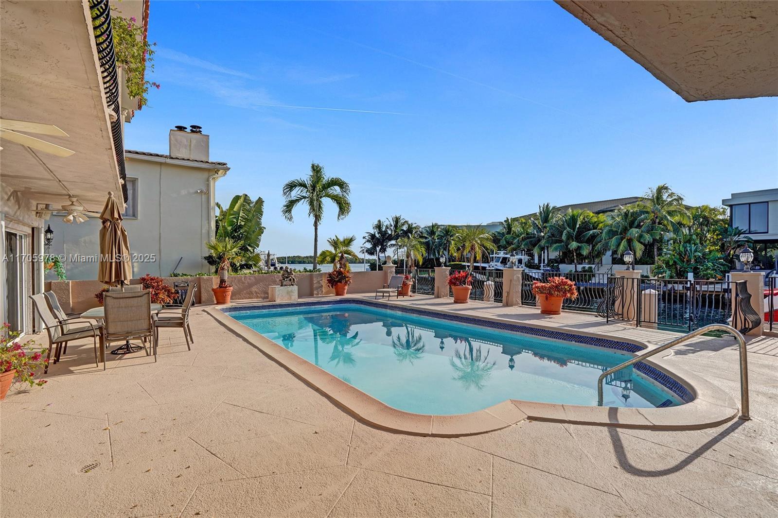 One of a kind with Bay views!!!! Located in the gated, police-protected community of Sans Souci Estates, this 2-story concrete home offers breathtaking open bay views and an extra-wide deep-water canal with ocean access just minutes away. Perfect for larger boats, it features a 20,000-lb boat lift and a sprawling outdoor entertaining area with a pool, lush landscaping, and up-lighting. Inside, enjoy 5BR/4BA, soaring ceilings, marble floors, and natural light throughout. The oversized master suite boasts one of the largest layouts in the area, a spa-like bath, and a huge private terrace overlooking the bay. The air-conditioned 2-car garage doubles as flexible space. This premium property shines day and night, offering luxury waterfront living at its finest.
