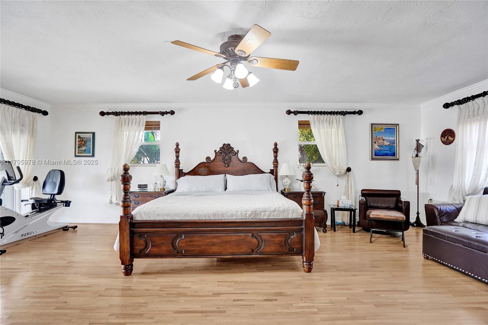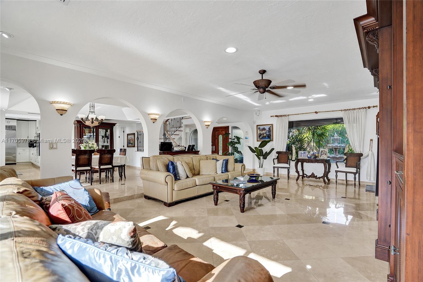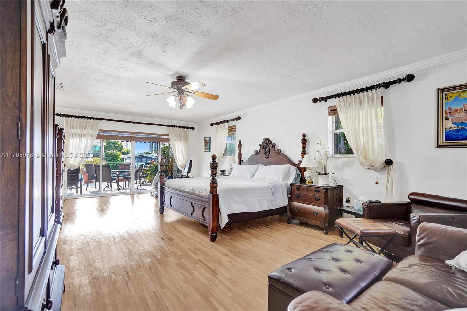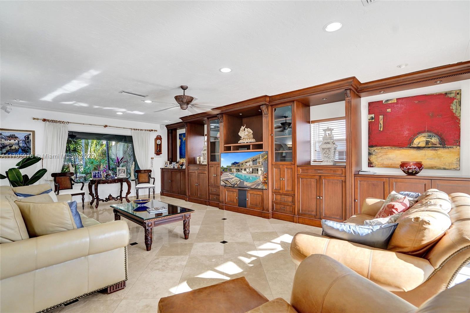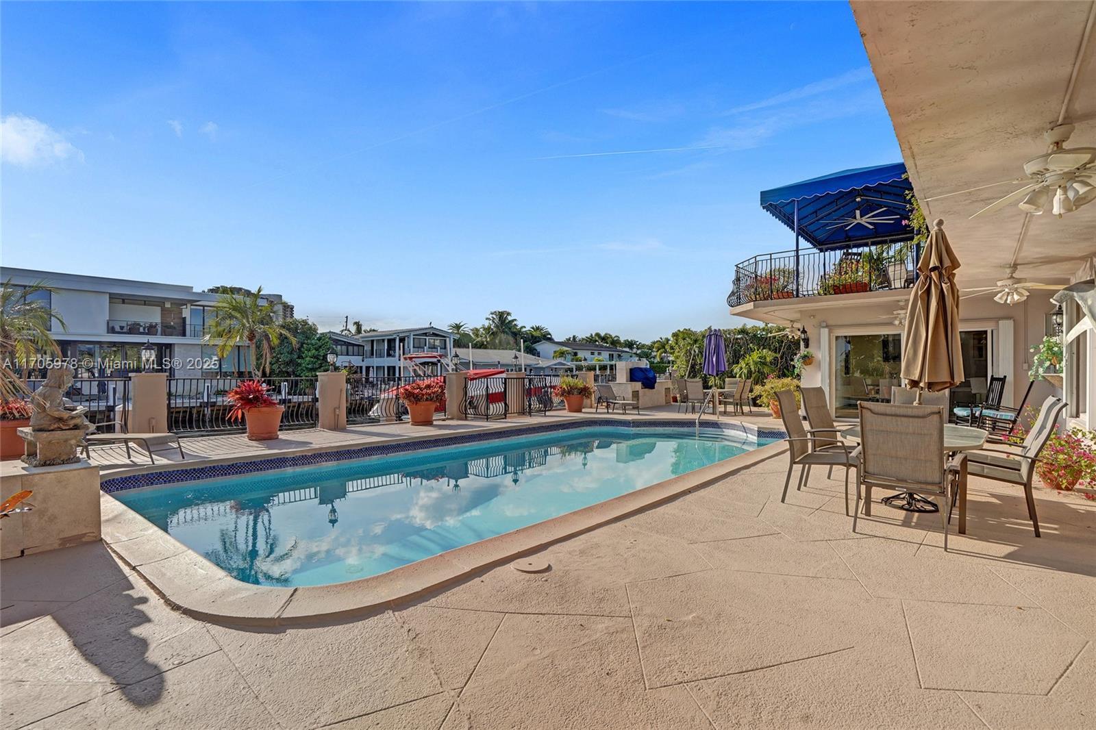 One of a kind with Bay views!!!! Located in the gated, police-protected community of Sans Souci Estates, this 2-story concrete home offers breathtaking open bay views and an extra-wide deep-water canal with ocean access just minutes away. Perfect for larger boats, it features a 20,000-lb boat lift and a sprawling outdoor entertaining area with a pool, lush landscaping, and up-lighting. Inside, enjoy 5BR/4BA, soaring ceilings, marble floors, and natural light throughout. The oversized master suite boasts one of the largest layouts in the area, a spa-like bath, and a huge private terrace overlooking the bay. The air-conditioned 2-car garage doubles as flexible space. This premium property shines day and night, offering luxury waterfront living at its finest.