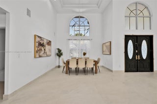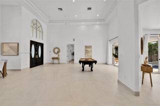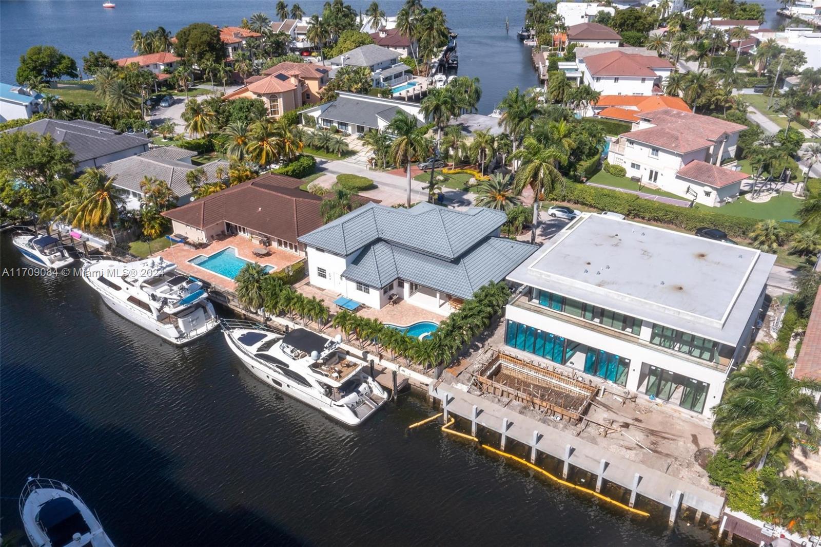Welcome to this stunning 5-bedroom, 4-bathroom waterfront masterpiece in the prestigious, guard-gated community of Eastern Shores. With direct ocean access and no fixed bridges, this property offers the ultimate in luxury and convenience for boating enthusiasts, featuring a private dock capable of accommodating an 80-foot yacht and a Wave runner elevator lift for added water sport enjoyment. Designed with modern elegance, this home boasts soaring high ceilings, exquisite marble flooring, and premium granite countertops throughout. Hurricane-impact windows ensure safety and peace of mind, while the home is also equipped with 4 separate A/C zones, a heated pool, and a relaxing spa to elevate your living experience.