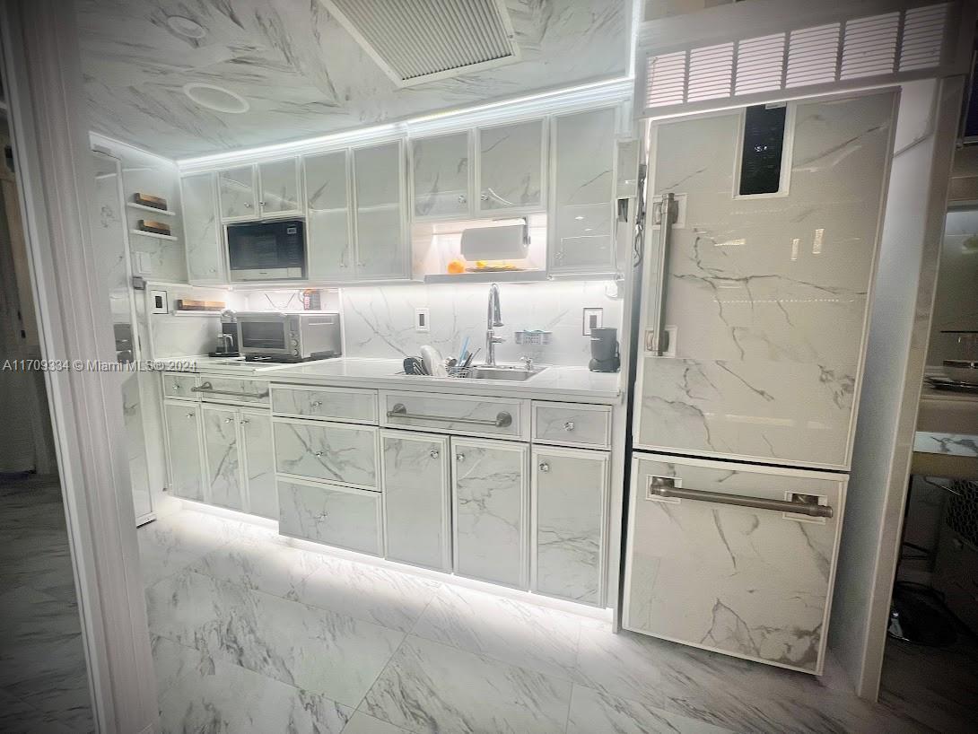 Converted one bedroom design. Can be used as AirBnB-Rental - or Use as your residence Offered fully furnished with tons of upgrades, this one-of-a-kind residence brings Resort Lifestyle living to life. Breathtaking Atlantic ocean view residence directly on the beach in the highly sought after city of Sunny Isles Beach. Featuring in unit views of the Atlantic ocean through hurricane-impact glass picture windows and floor-to-ceiling Carrara marble walls and more. This condo has elegant moldings, accent lighting and trim and a custom dining area. The galley kitchen offers plenty of room to entertain guests including two separate sleeping areas with lots of storage with a custom closet. 24 hour Valet parking service and one permanent parking space is included.