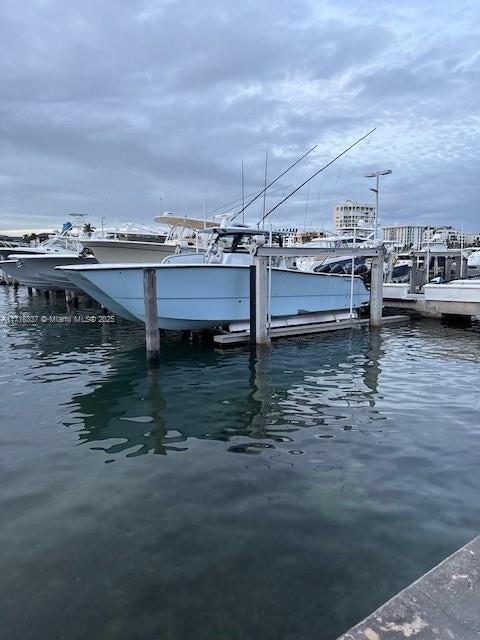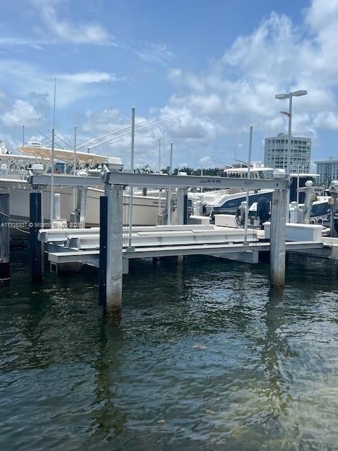 Rarely available dock slip, B1, with new lift at Grove Isle Marina. 30,000LBS new Golden boat lift, new dockside electric and pedestal, and four new cement pilings with the lift. Max 37 foot boat. $2250 quarterly marina maintenance fee. Customizable bunks for any boat shape or size including monohulls and catamarans. 24 hour security, daily dock hands, dock carts and marina amenities. Call LA.