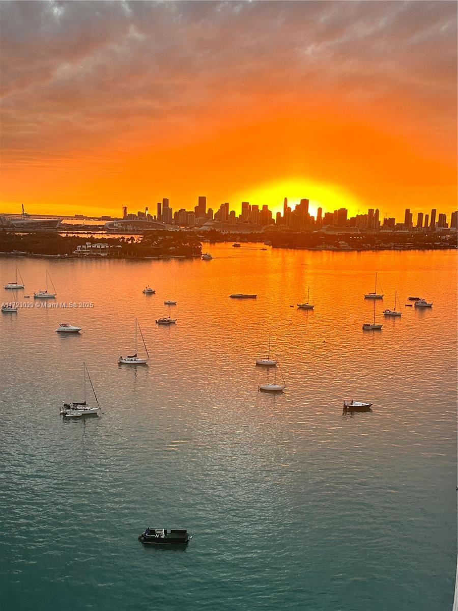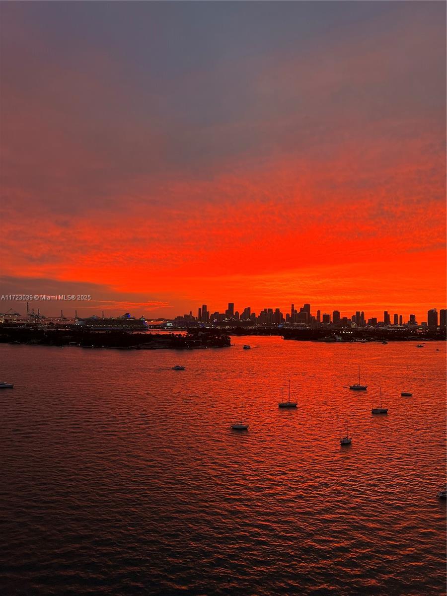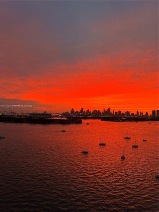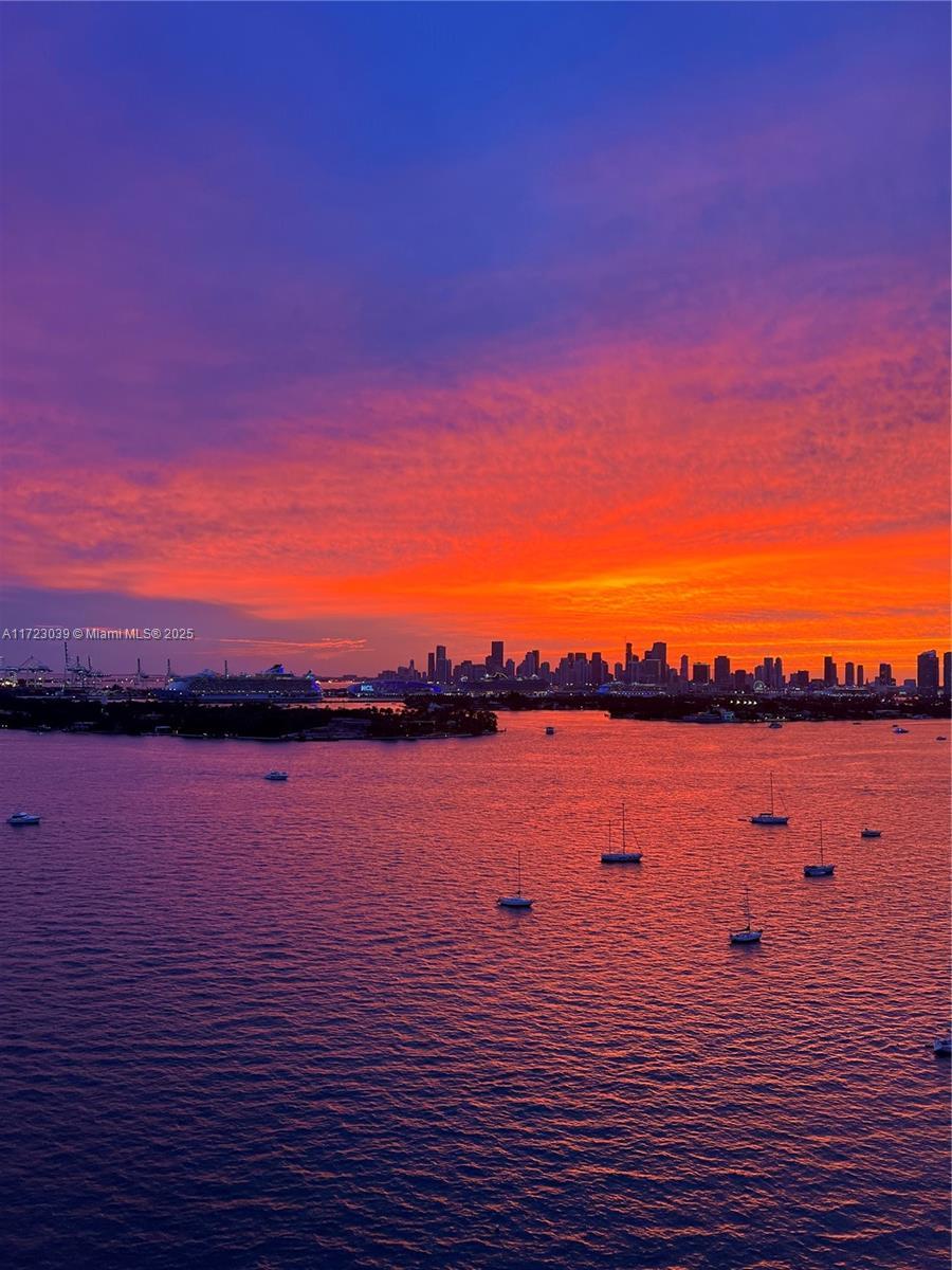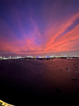 Unwind from your long days on your private balcony watching Sunsets so unreal they look AI Generated. This 2/2 split floor plan boasts stunning views of the ocean and Biscayne Bay. It's Southern exposure bathes the apartment in warm natural light. Features include Foyer Entry, Open Kitchen, Dining Area, Washer/Dryer. Feel like you're on an eternal vacation in this Resort Style Waterfront Complex enjoying Bayfront Pool, Huge Gym, Spa, Volleyball, Tennis, Putting Green, with 2 Outdoor Kitchens & KOI Garden, Party Room & Business Center, Electric Vehicle Charging, Concierge & Security. Cable & Internet Included.