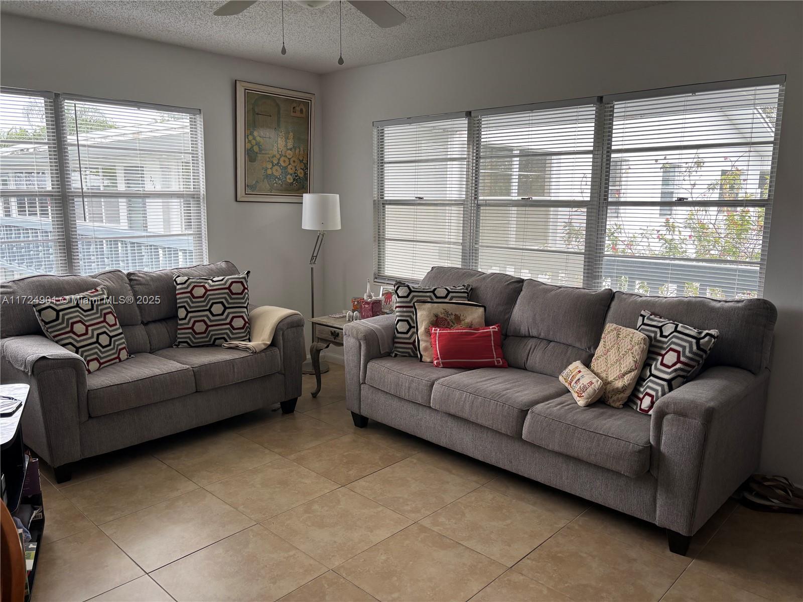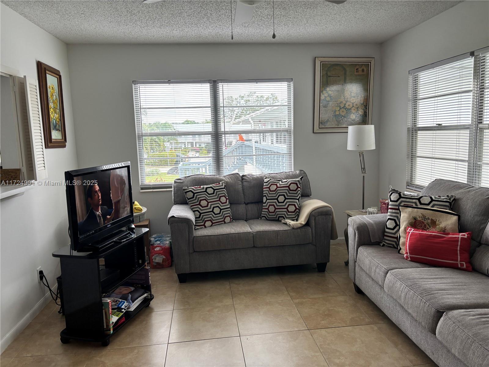 Welcome to Century Village, a luxurious 55+ community offering a 1 bedroom, 1.5 bathroom condo. This corner unit features granite counters, stainless steel appliances, and tile flooring, providing ample natural light and privacy. With amenities like a fitness center, clubhouse, and social activities, this low-maintenance condo is perfect for retirees seeking comfort and style. Schedule a showing today to experience the retirement lifestyle you deserve! HOA $561/M. (HOA Included Seacrest $279,28 Landscaping- Century Village MGM $172-Recreation $110)
