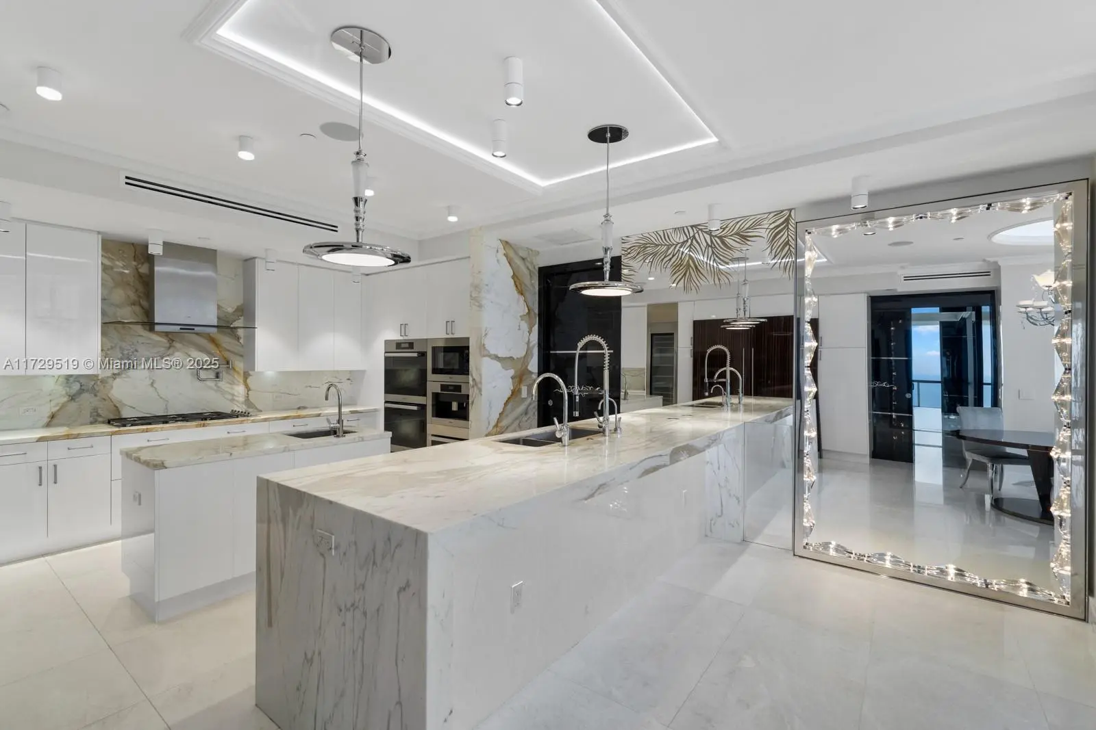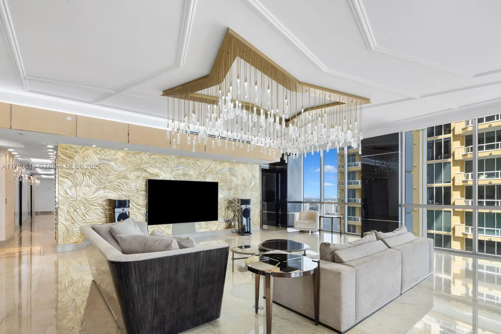 An extra - ordinary residence with panoramic views, creating a breathtaking backdrop! This flow through corner unit has 4 bedrooms, 6 and a half bathrooms and 3 expansive balconies with direct ocean and intercoastal views! The unit was completely renovated and no expense was spared! Exquisite, custom - lacquered doors throughout the unit; Italian marble and onyx in all the bathrooms that light up; custom ceilings; wooden/stone panelling throughout and many more exquisite upgrades!! Mansions of Acqualina is renowned as the worlds finest residences! The building also offers a rolls Royce house car, daily breakfasts, a hammam, a spa, wine room, golf stimulator, game room, movie theater, cabanas and so much more! Every detail is designed to provide an unparalleled living experience.