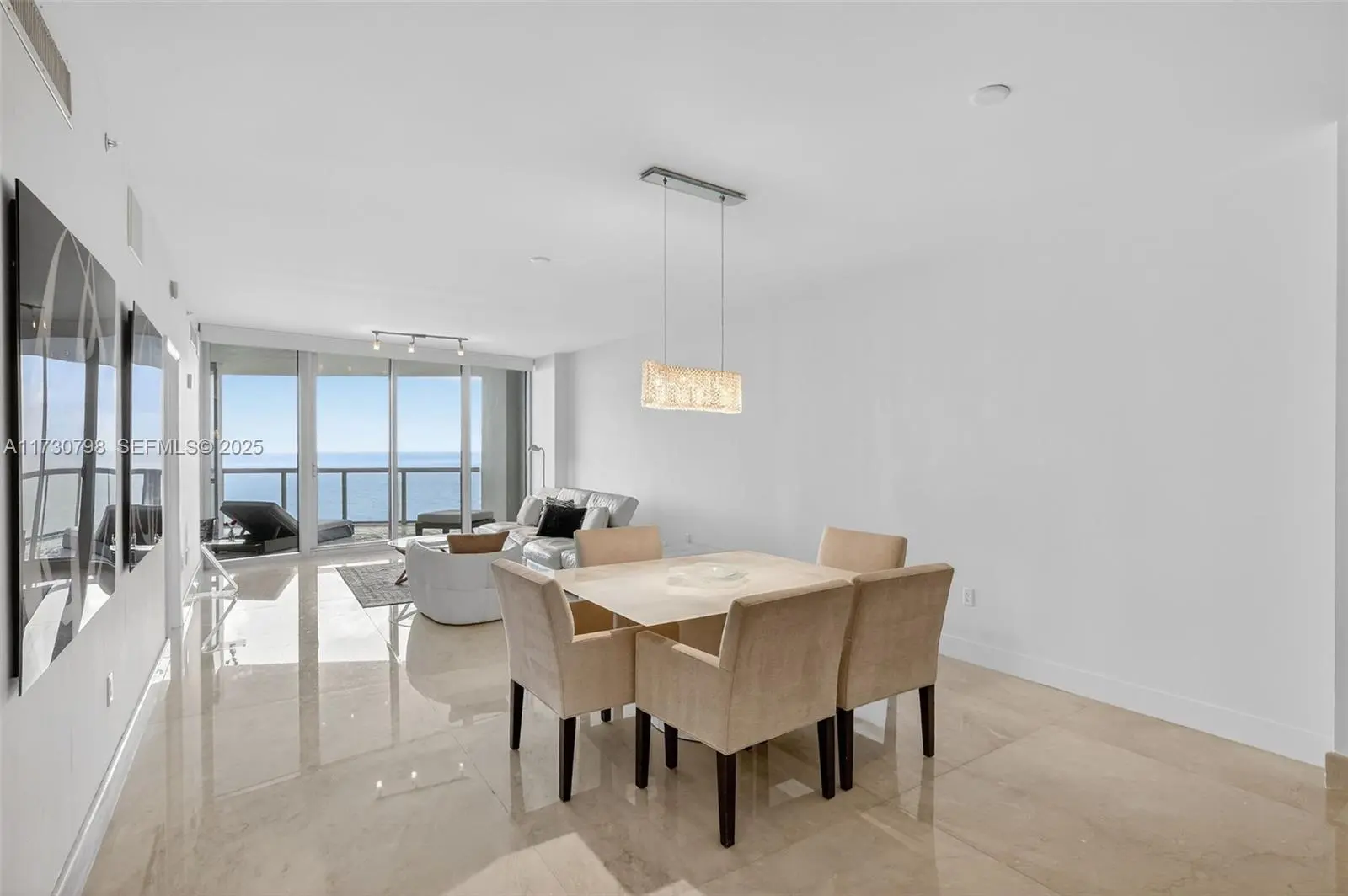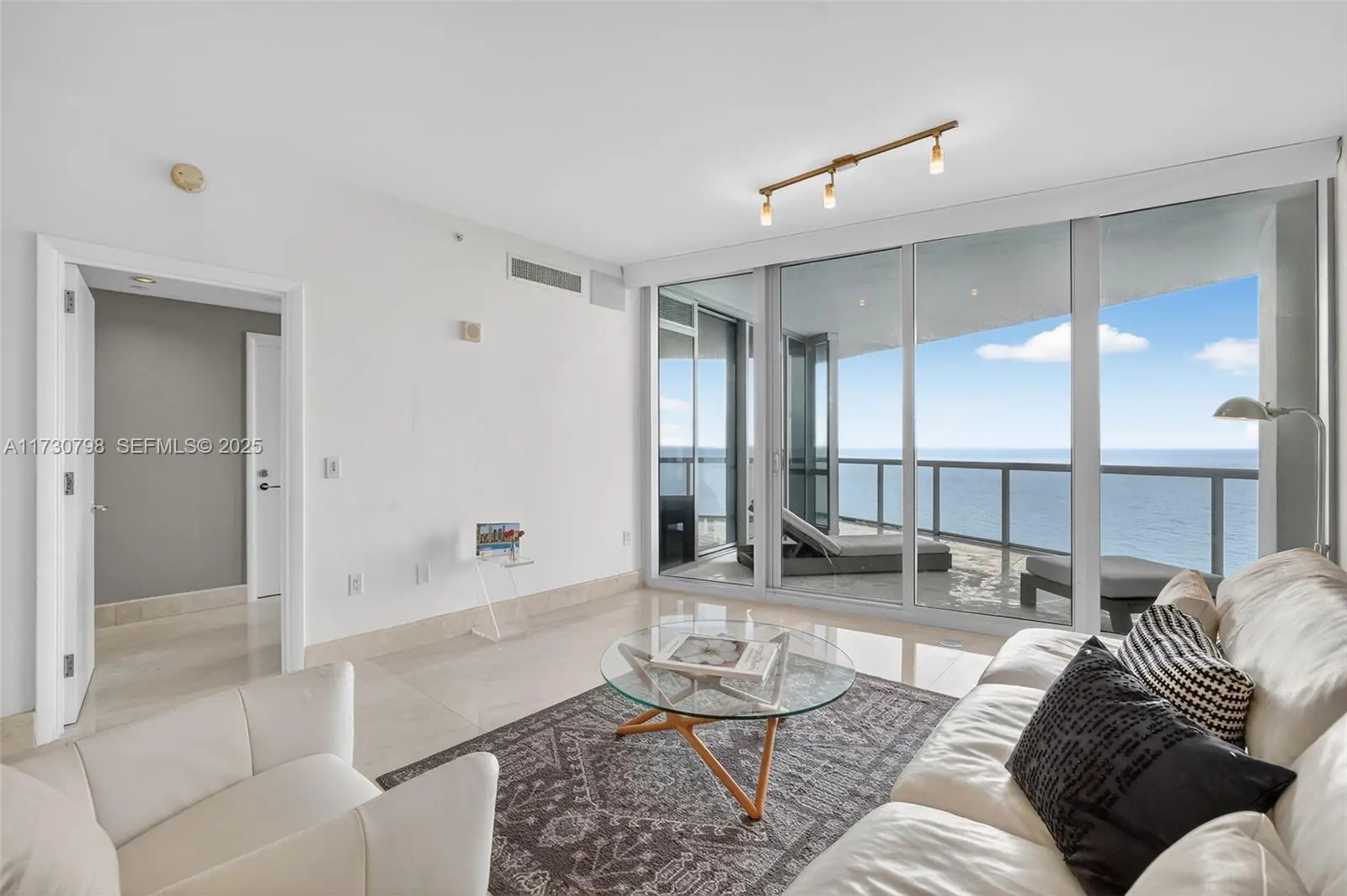 Wow! Perfect 10! Enter this Beachfront Palace in the Sky through private elevator foyer and immediately see direct ocean views throughout! This spacious contemporary residence is appointed w/ the finest finishes & furnished w/ luxury! 3 beds, 3 baths, & 1 half bath in a flow-through floor plan w/ a white open kitchen. Marble floors throughout, electric shades/blackouts throughout, spacious primary suite, every bedroom has a terrace for you to enjoy! 2 parking spaces included. Jade Ocean designed by famous architect Carlos Ott and offers 5 Star Amenities: beach service, cafe, sunrise & sunset pools, wellness & fitness center, kid’s playroom, business center & in-home touch screen that allows residents to request concierge, valet, dining & spa services. Can be sold with furniture included.