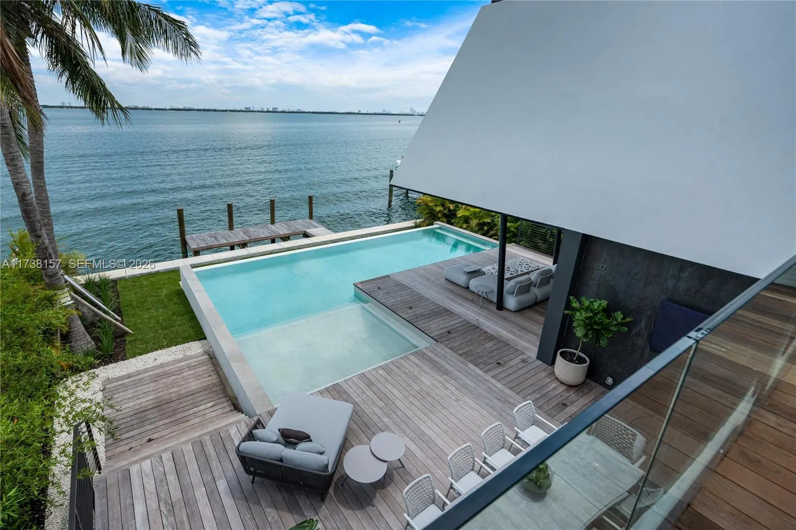 Welcome to Villa Marco, a brand-new waterfront home on the Venetian Islands. The residence offers wide-open Bay views, walls of glass, ultra-high ceilings, and a great layout with an abundance of open living space. With 7,300 square feet, 4 bedrooms (convertible to 5), and 5.5 baths, this home ensures comfort and privacy. Very appealing outdoor spaces are ideal for entertaining or simply enjoying the serene surroundings. Highlights include a panoramic rooftop terrace with a hot tub, accessible by a sleek glass elevator, and garage with a lift allowing 2 cars. Experience the unparalleled craftsmanship and luxurious atmosphere that define Villa Marco. Fully furnished and meticulously maintained. Ready to move right away and enjoy. Rate is for annual lease. Call for shorter term availability and for special summer rate discount!