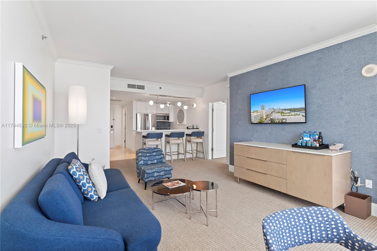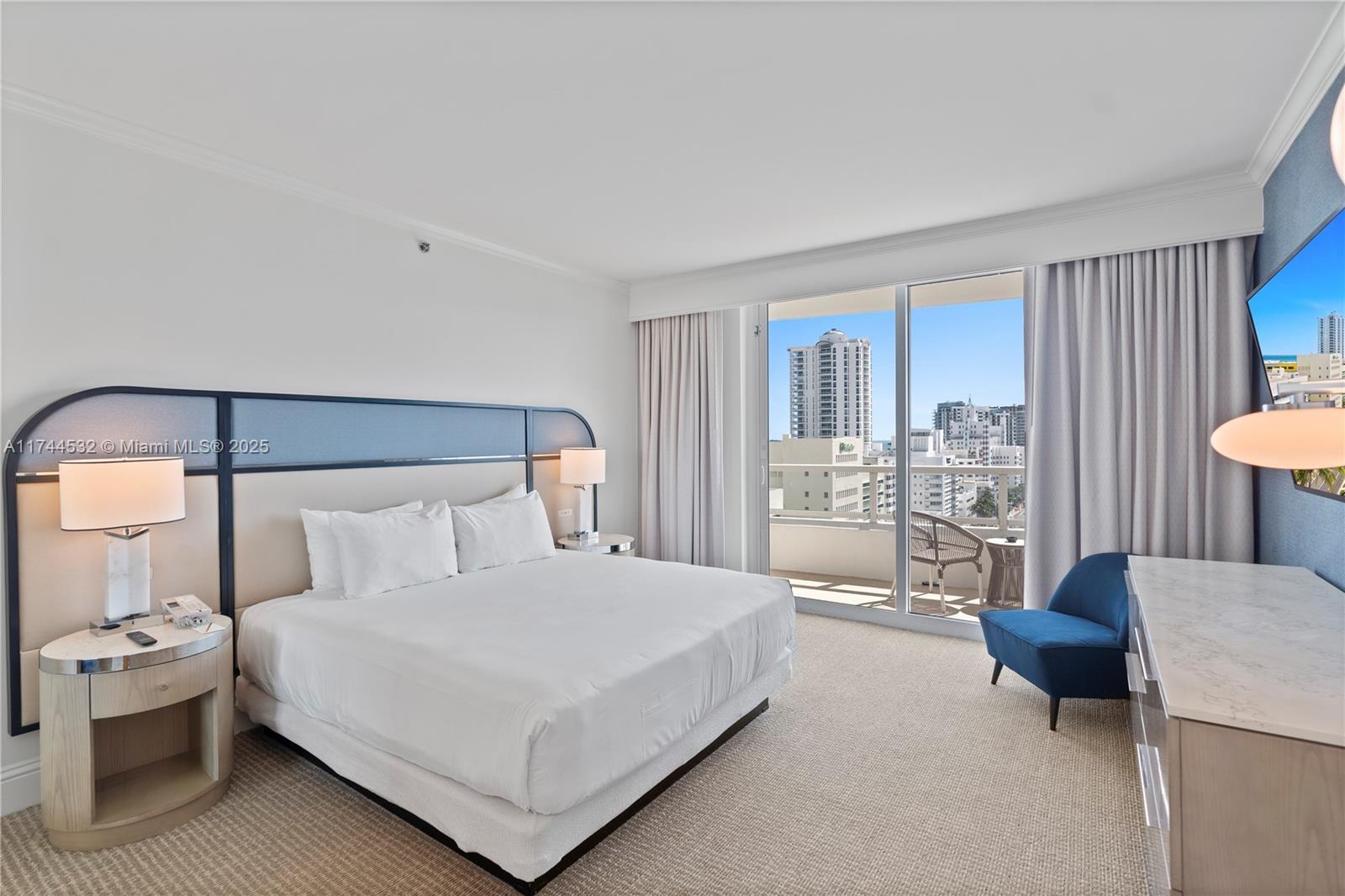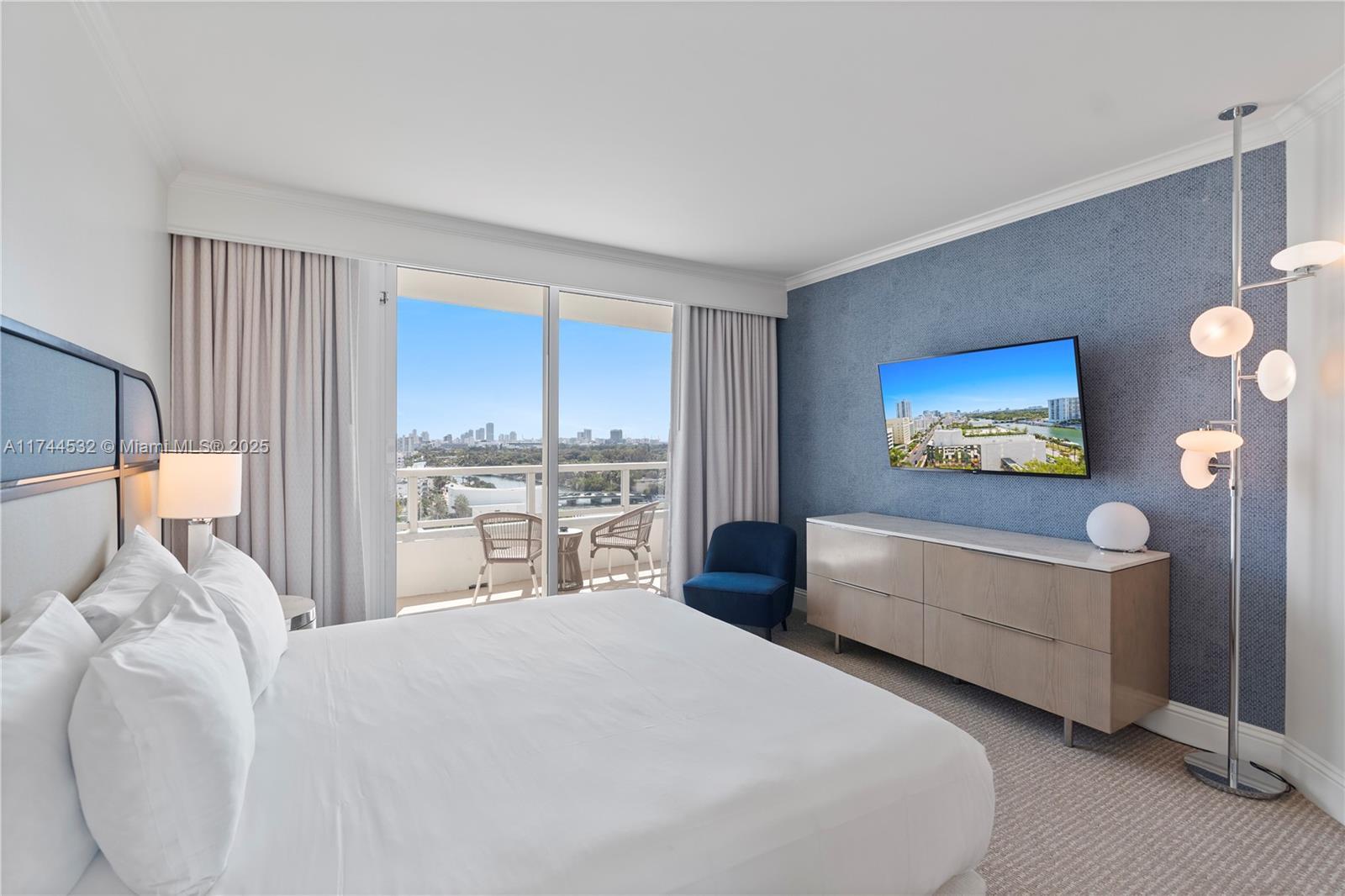 Experience luxury living in this beautiful 1 BD at Fontainebleau II, featuring breathtaking south-facing views of the ocean, city, & Intracoastal. This fully furnished, turnkey unit offers a private terrace, generous closet space, & spacious layout. Includes a king-size bed in the bedroom, sleeper sofa in living area, & a full kitchen. Enjoy the ease of resort-style, full-service living in one of Miami’s most iconic destinations. Enroll in hotel rental program & receive income while away! The Fontainebleau Resort offers luxury amenities on 22 oceanfront acres including award-winning restaurants, LIV night club, Lapis spa & state-of-the-art fitness center. Maintenance fees includes: AC, electricity, valet + daily free breakfast in the owner’s lounge.