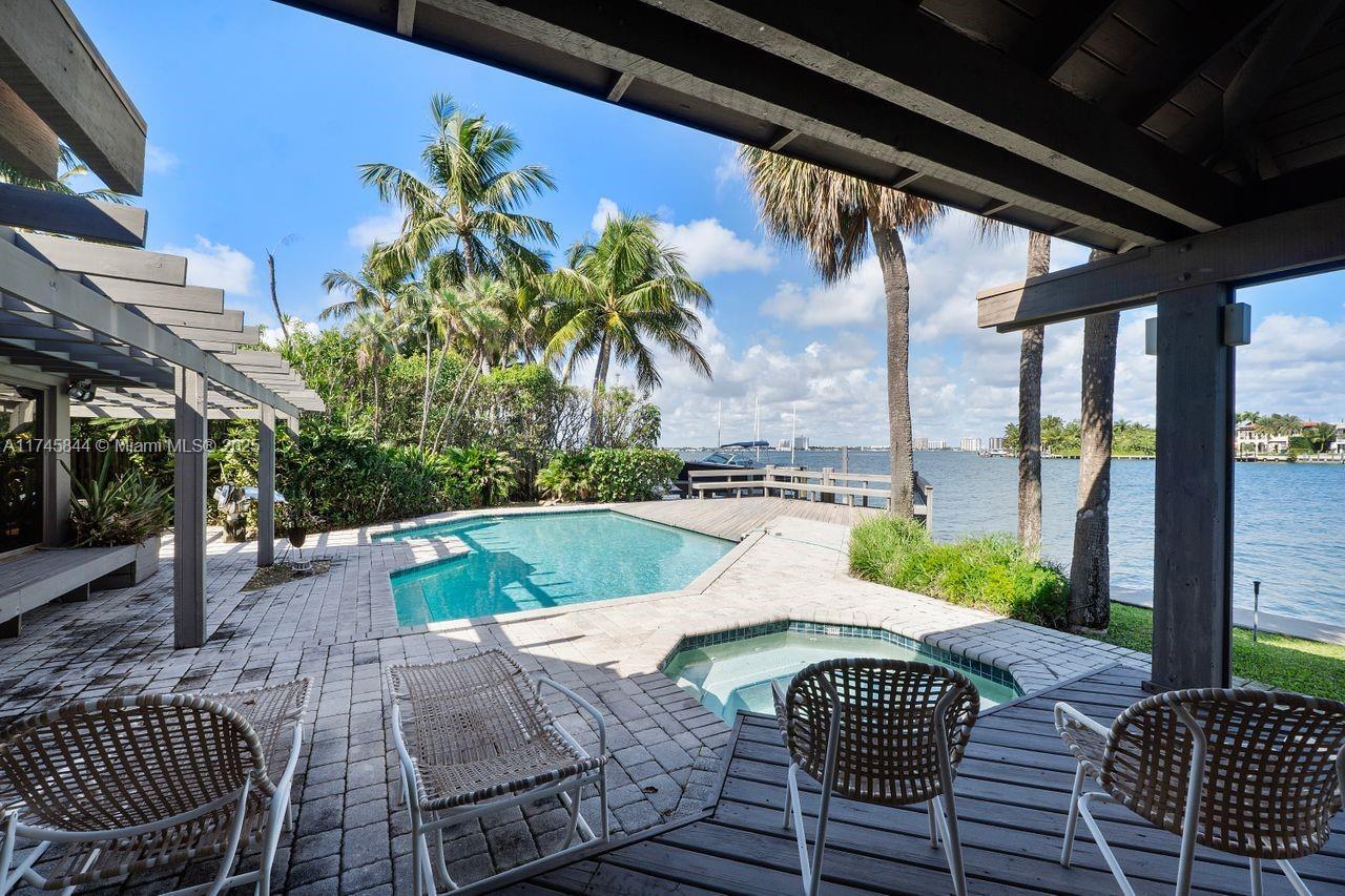 This exceptional waterfront Miami Beach residence on expansive Biscayne Bay epitomizes luxury living. Bring your boat, dock it, and unwind by the pool. Boasting four bedrooms and approximately 4,026 sq. ft., this spacious home is an ideal sanctuary for family life. The grand living area features a bar, pool table, and both a living room and Florida room, each with breathtaking water views. A two-car carport graces the front. Designed by renowned architect Barry Sugerman, this property is just 15 minutes from South Beach and Bal Harbour, nestled on a guarded island near Normandy Isle Golf Course.