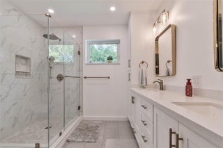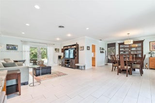 Beautiful 4 bdrm, 2.5 bath home on a half-acre, oversized corner lot in the Village of Pinecrest. Formal living & dining areas. Cheerful kitchen w/ blonde tone wood cabinetry & quartz countertops, opens to family rm w/ access to the patio. Fantastic primary suite has serene views of the pool & backyard. Newly remodeled primary bath w/ modern details, double sinks, glass enclosed shower. 4th bdrm currently connects to the primary suite for use as a gym, office but can easily be changed back to a 4th bdrm. Impact windows/doors, plank tile flooring. Fenced backyard w/ lime & mango trees, double gate w/ space to park a boat/ RV. Wonderful outdoor entertaining space. Covered terrace w/ bar area ready for a summer kitchen, pool, marble patio. Paver circular driveway. 2 car garage side entry.
