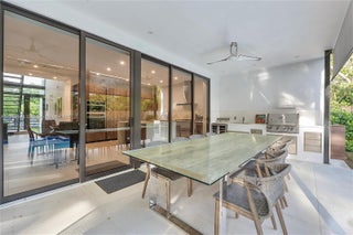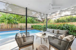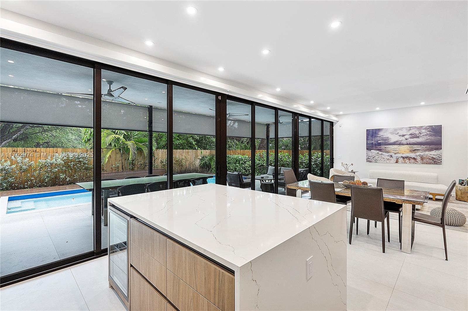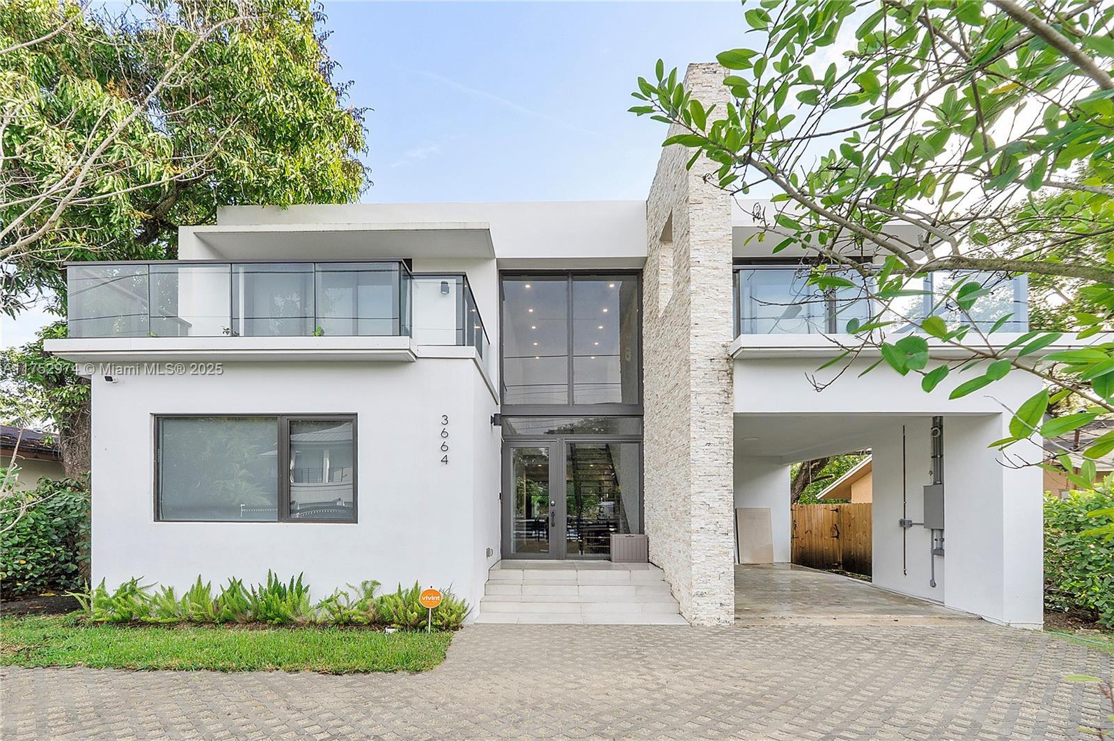 This spacious and elegant contemporary home offers a perfect blend of luxury and comfort. With an open floor plan and soaring 9-foot ceilings, natural light flows effortlessly throughout the entire home. 5 bedrooms and 5 bathrooms. Stunning Italian kitchen cabinets, European appliances and Italian flooring are complemented by an open kitchen island, creating a seamless space for cooking and socializing. The entertainment area is truly one-of-a-kind, with impact doors that open completely, blending the indoor living spaces with the outdoor patio and pool area. Main suite is a private retreat with a spa-like bathroom featuring Roman bath, walk-in closets, and an oversized balcony overlooking the pool. This home is the perfect combination of style, function, and relaxation – a must-see!