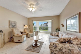 Wow! Great opportunity to own a 2 bedrooms and 2 bathrooms in the Quince Building at Hawaiian Gardens Phase 7. Directly on the first floor, just park and walk right in! Will sell all furnished and turnkey. This light, bright unit features an opened kitchen, tile flooring throughout, and a spacious florida room that is also part of the unit, for more sf under AC and beautiful water views. The spacious Florida room is a perfect spot to enjoy Florida's great weather, with large windows. New AC only 2 years young! Relax and take in the serene views of the fountain and lake. Located in a well-maintained, HOPA-verified community, you'll enjoy a variety of amenities such as a pool, shuffleboard, bocce and BBQ grills.