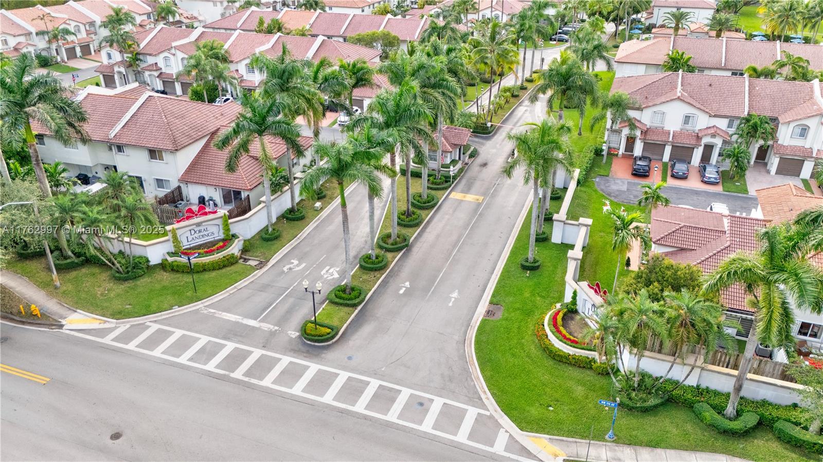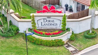 This charming two-story townhome is situated in the highly desirable, gated community of Doral Landings. As a corner unit, it provides extra privacy and natural light. The home has been recently updated with brand-new kitchen appliances, fresh paint throughout, and stylish zebra shades. New light fixtures add a modern touch to the space. Custom closets offer generous storage, and accordion shutters upstairs provide added convenience and security. Look for the link with the immersive fly-through video.