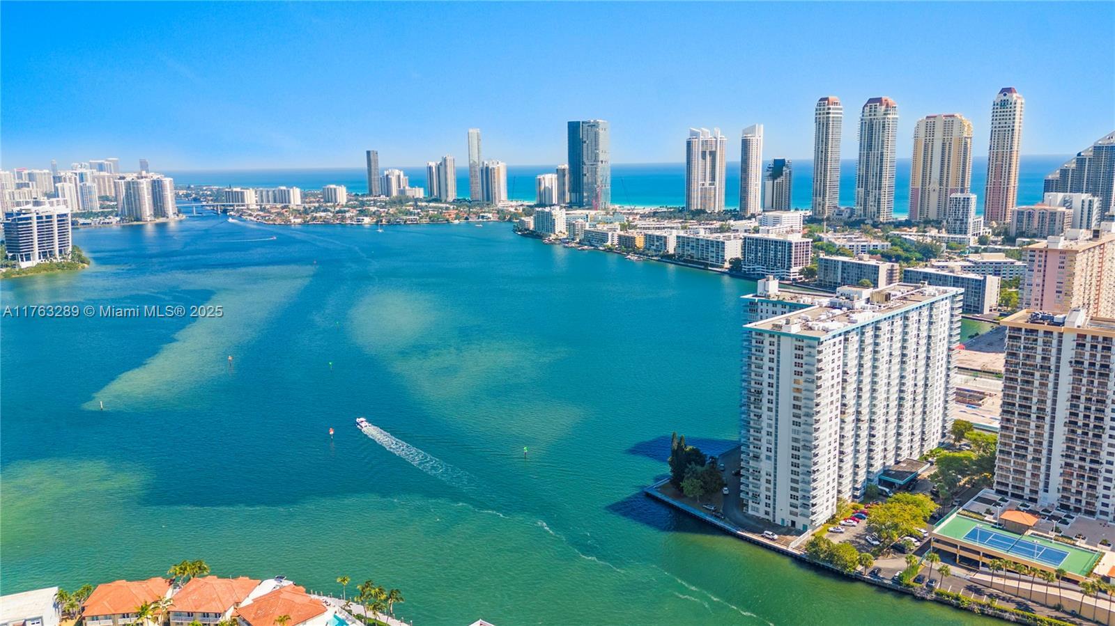 Welcome to your dream home in Sunny Isles on the Intracoastal. Step inside and be captivated by the spacious layout offering large bedrooms with natural light. Walk-in closets provide generous storage, while the remodeled master and guest baths radiate elegance. The open living area seamlessly integrates the large living room and dining space while entertaining guest. Enjoy morning coffee with bay and pool views, or unwind as the sun sets from the L-shaped patio. Steps from beaches, A+ schools, parks, a marina, dining and shopping. Amenities include a gym, sauna, a Brand new tennis court and pool deck(to be completed summer 2025), 24-hour security, social room and a game room. Impact windows in every room provide safety and efficiency. Experience the best of living in Sunny Isles!