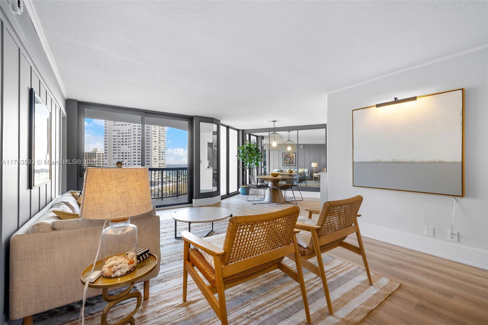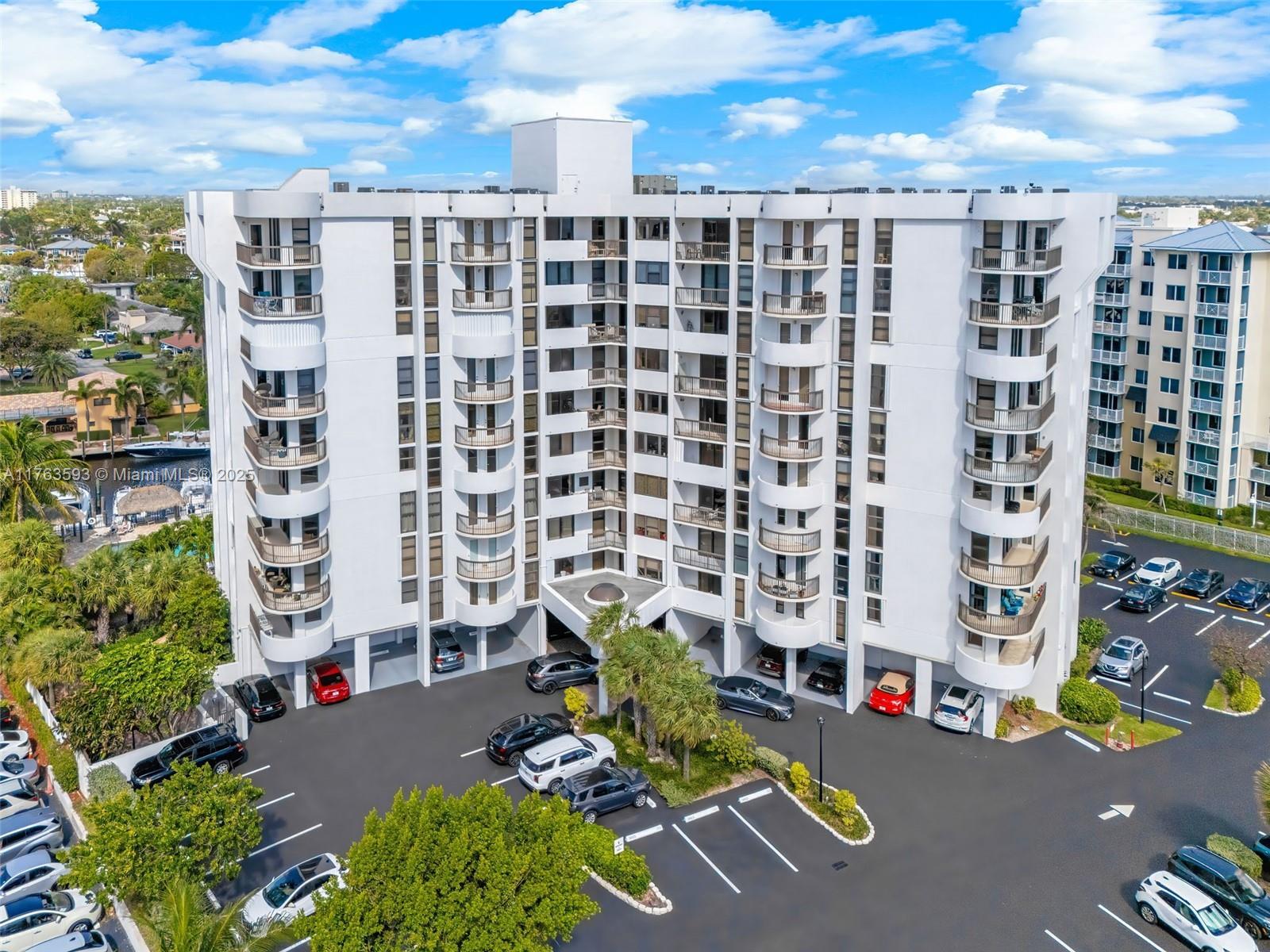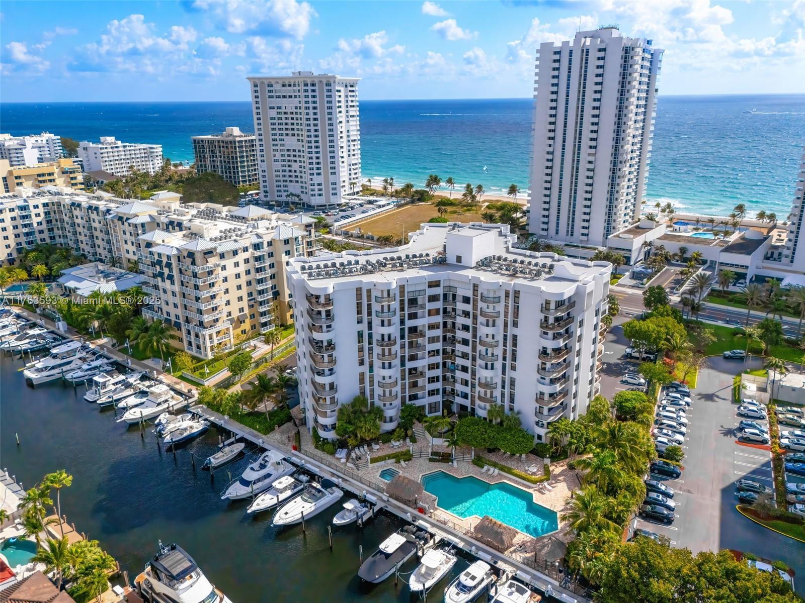 Beautifully designer's style cozy furnished unit in a 10-story boutique building, across from the beach. 8th floor apartment with both ocean and canal views newly renovated with new kitchen and appliances. One bedroom and L-shaped balcony to enjoy both morning and end-of-day sunset with all impact windows and doors (2024). The building has a new roof (2024), and the 40-year inspection has been completed. A spacious pool area, complete with BBQs, a kitchen, tiki huts, and a whirlpool provide a luxurious waterfront experience. Lush landscaping surrounds the pool, which overlooks a canal leading to Lake Santa Barbara and onward to the ocean, with unobstructed access. Property is fenced with electronic entry and exit gates.