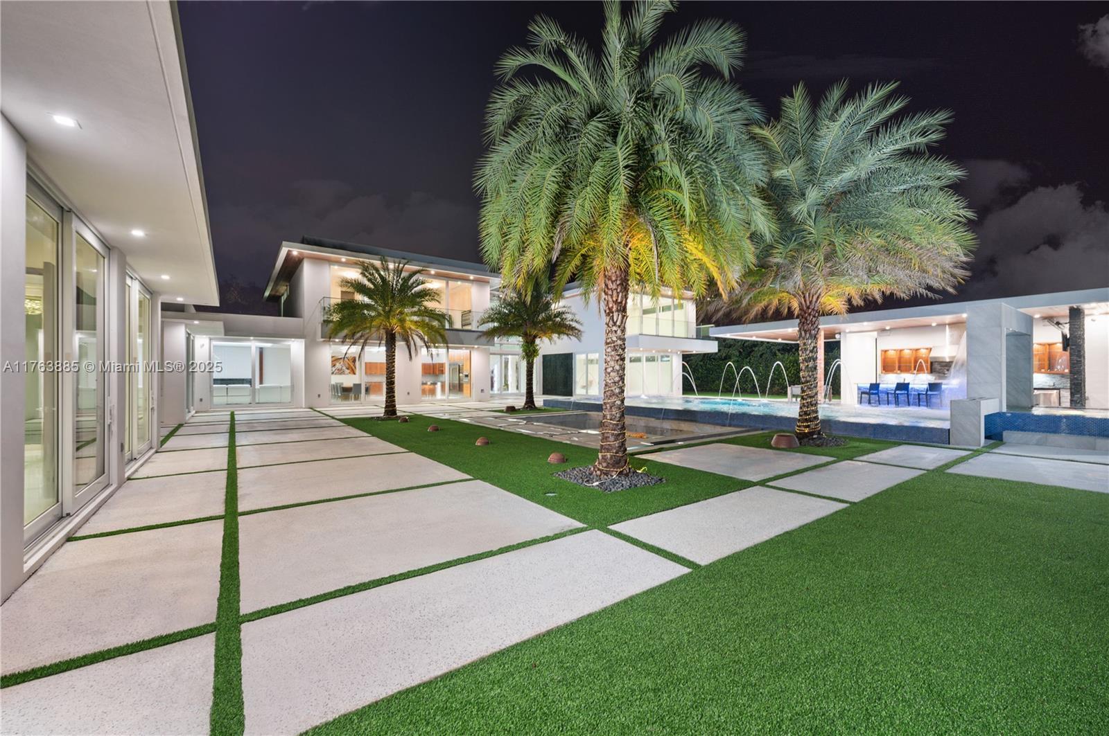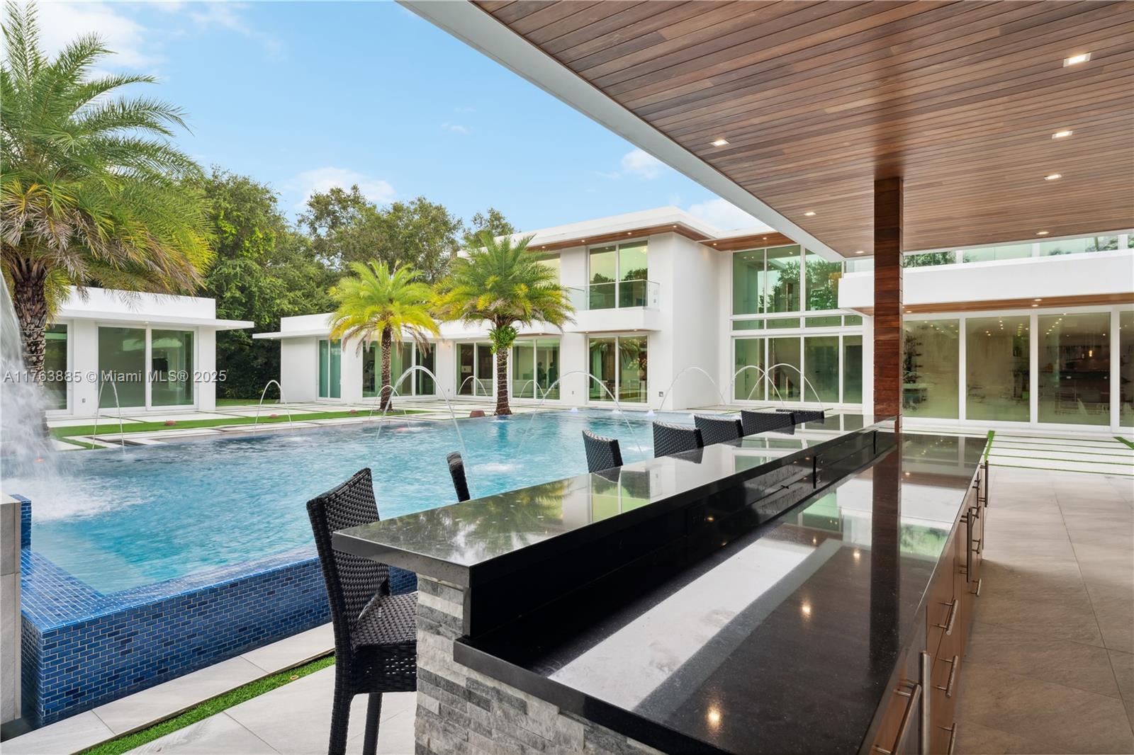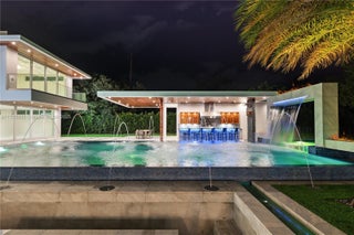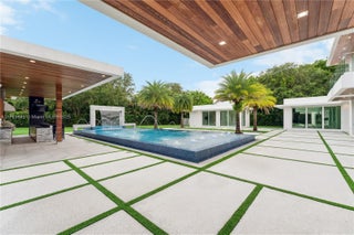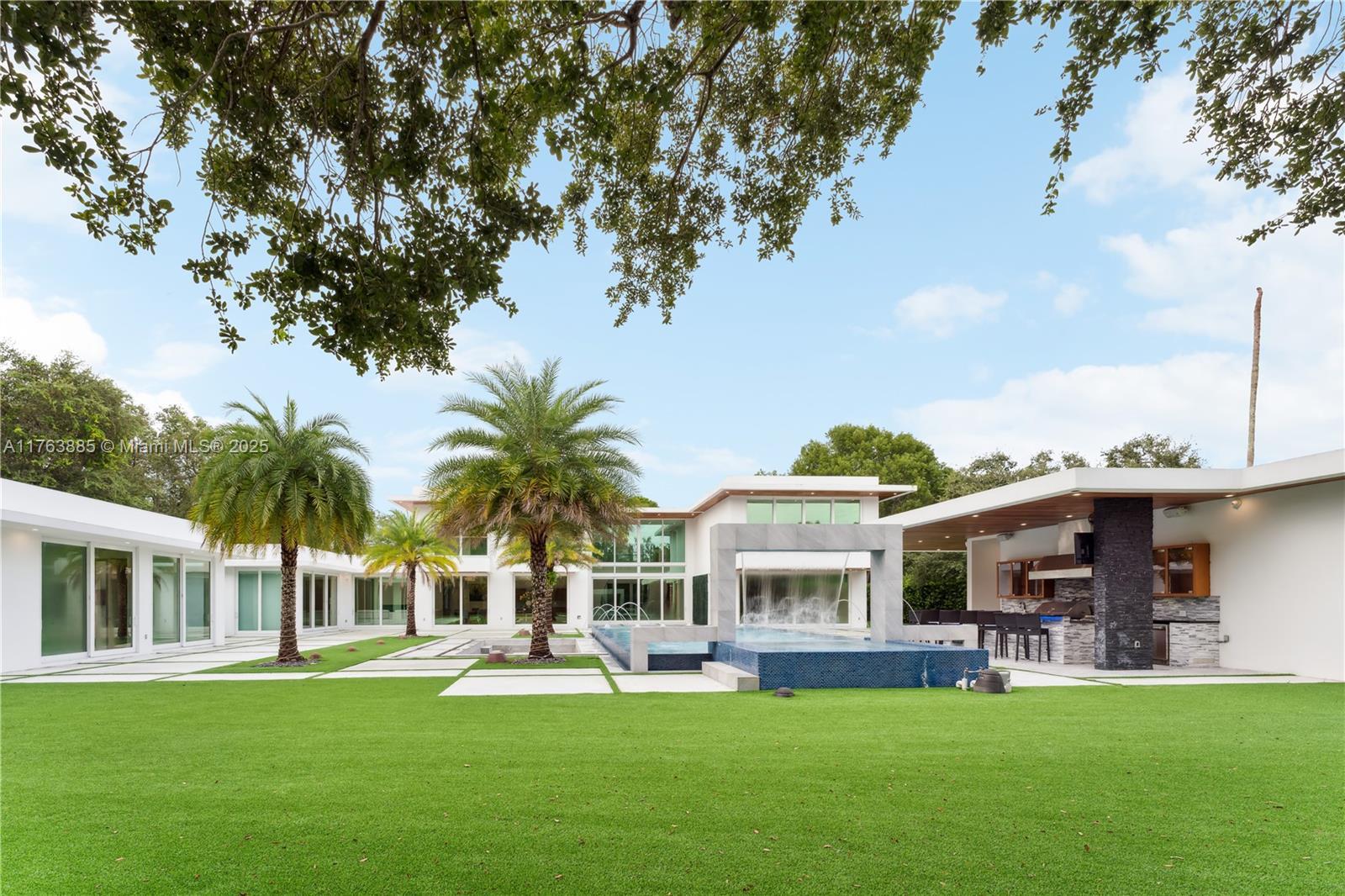 Resort-style living on a Pinecrest Acre+ lot, "PERFECTION". A 2020-built modern work of art. Greeted by soothing sounds of tranquil water features from your Port Cochere, prepare to be awestruck as you enter the Grand Foyer, where majestic Imperial staircases and soaring ceilings create an ambiance of luxury living. With 10,150 sqft. of living space, 8 bedrooms, 10.5 baths, and over an acre of manicured land, this home was custom-designed for those who revel in the art of entertainment. Homes features a custom Italian kitchen, Wolf appliances, gas stoves, wine cellar, elevator, 18 zones of sound, smart features, Lutron lighting, 8k surveillance, a guest house, a dog park (with AC), gym, 3 car garage, firepit, 50ft pool/spa, summer kitchen, waterfall & near Miami's finest schools.