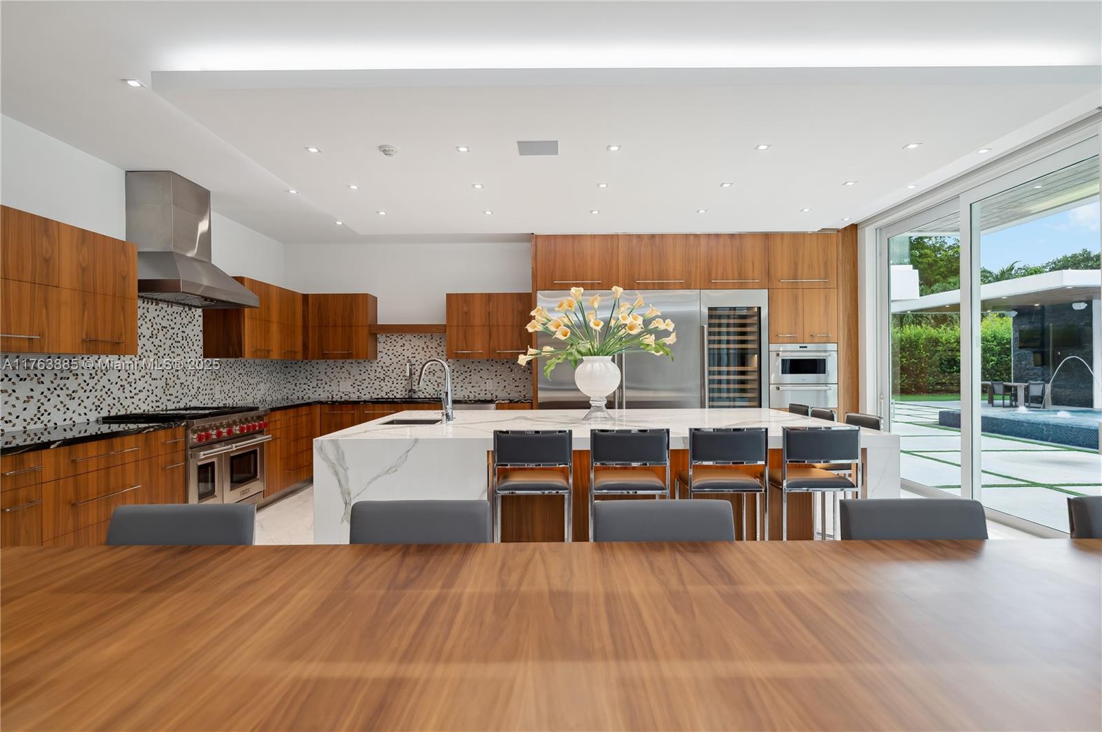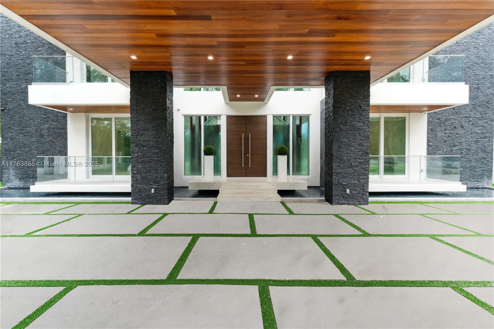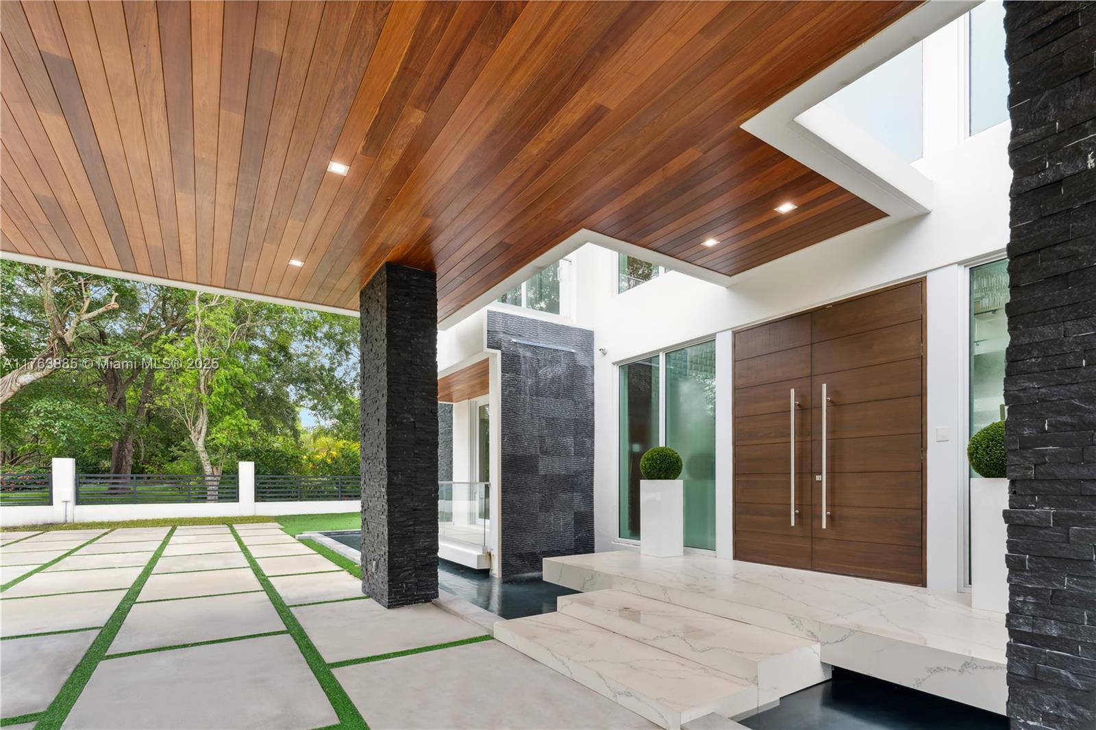 Resort-style living on a Pinecrest Acre+ lot, "PERFECTION". A 2020-built modern work of art. Greeted by soothing sounds of tranquil water features from your Port Cochere, prepare to be awestruck as you enter the Grand Foyer, where majestic Imperial staircases and soaring ceilings create an ambiance of luxury living. With 10,150 sqft. of living space, 8 bedrooms, 10.5 baths, and over an acre of manicured land, this home was custom-designed for those who revel in the art of entertainment. Homes features a custom Italian kitchen, Wolf appliances, gas stoves, wine cellar, elevator, 18 zones of sound, smart features, Lutron lighting, 8k surveillance, a guest house, a dog park (with AC), gym, 3 car garage, firepit, 50ft pool/spa, summer kitchen, waterfall & near Miami's finest schools.