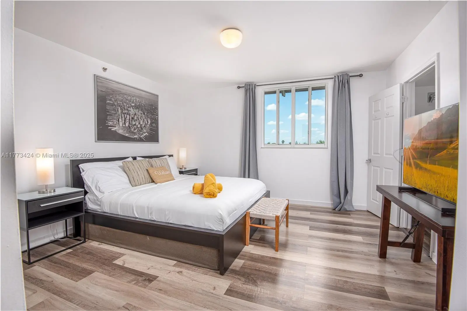 Beautiful and quiet corner apartment just steps from the beach to enjoy the best sunsets and real beach life. Fully furnished . Big and bright one bedroom with one full bathroom and half bath . New washer and dryer inside apartment . One private assigned parking garage next to elevator . Walking distance to worship houses. Located on 2nd floor next to elevator and stairs. Rent includes: water, one garage. Bikes rack storage on garage.