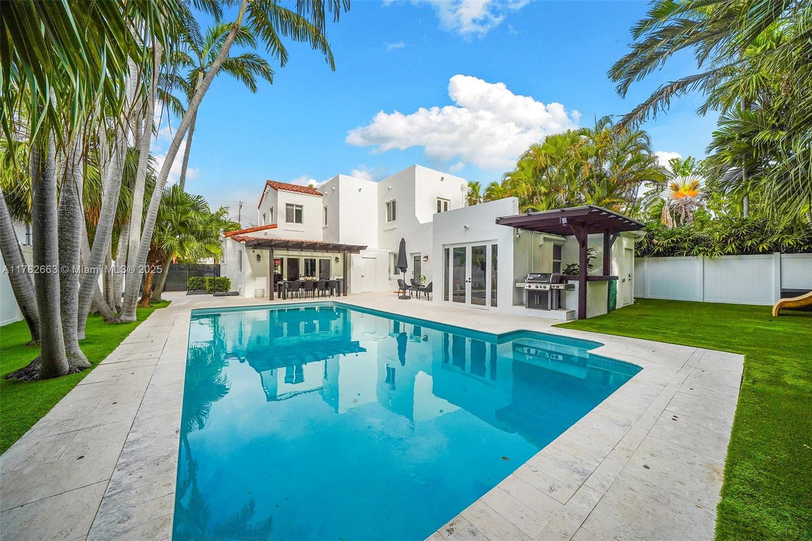 WHERE TIMELESS CHARM MEETS ELEVATED PEACE OF MIND. Nestled in the heart of Miami Beach’s coveted La Gorce neighborhood, this beautifully renovated Old Spanish-style home blends timeless charm with modern upgrades. Featuring 4 spacious bedrooms, 4 full baths, and 2 flexible extra rooms ideal for a home office, gym, or guest space. Fully updated electrical and plumbing systems ensure safety and efficiency. Elevated construction, a whole-house natural gas generator, impact windows, and a water filtration system with PFAS removal offer added protection and wellness. Includes laundry room with modern washer and natural gas dryer. Outside, enjoy a private tropical oasis with 50+ mature palms, a resort-style 8-ft deep pool, and a built-in grill—perfect for entertaining or relaxing.