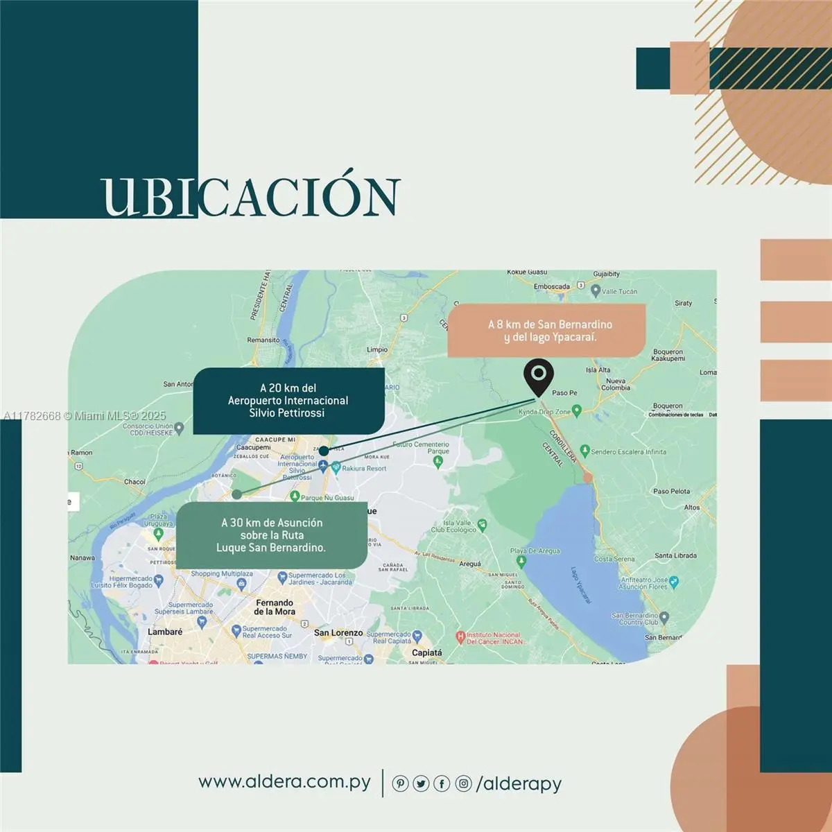 Welcome to Barrio Ámbar, a residential phase within the exclusive Aldera Resort Life community a master-planned development located 35 km from Asunción, near the scenic town of San Bernardino and Lake Ypacaraí. This is your opportunity to select your residential lot and preferred model home in what is set to be one of Paraguay’s premier resort-style communities. Fully urbanized lots in a gated setting with paved roads, green areas, and access to future amenities. Buyers may choose from developer-approved single-family home designs or inquire about custom options. Ideal for U.S. and International investors, retirees, or families seeking secure, scenic living in South America. Preview the virtual tour using the link.