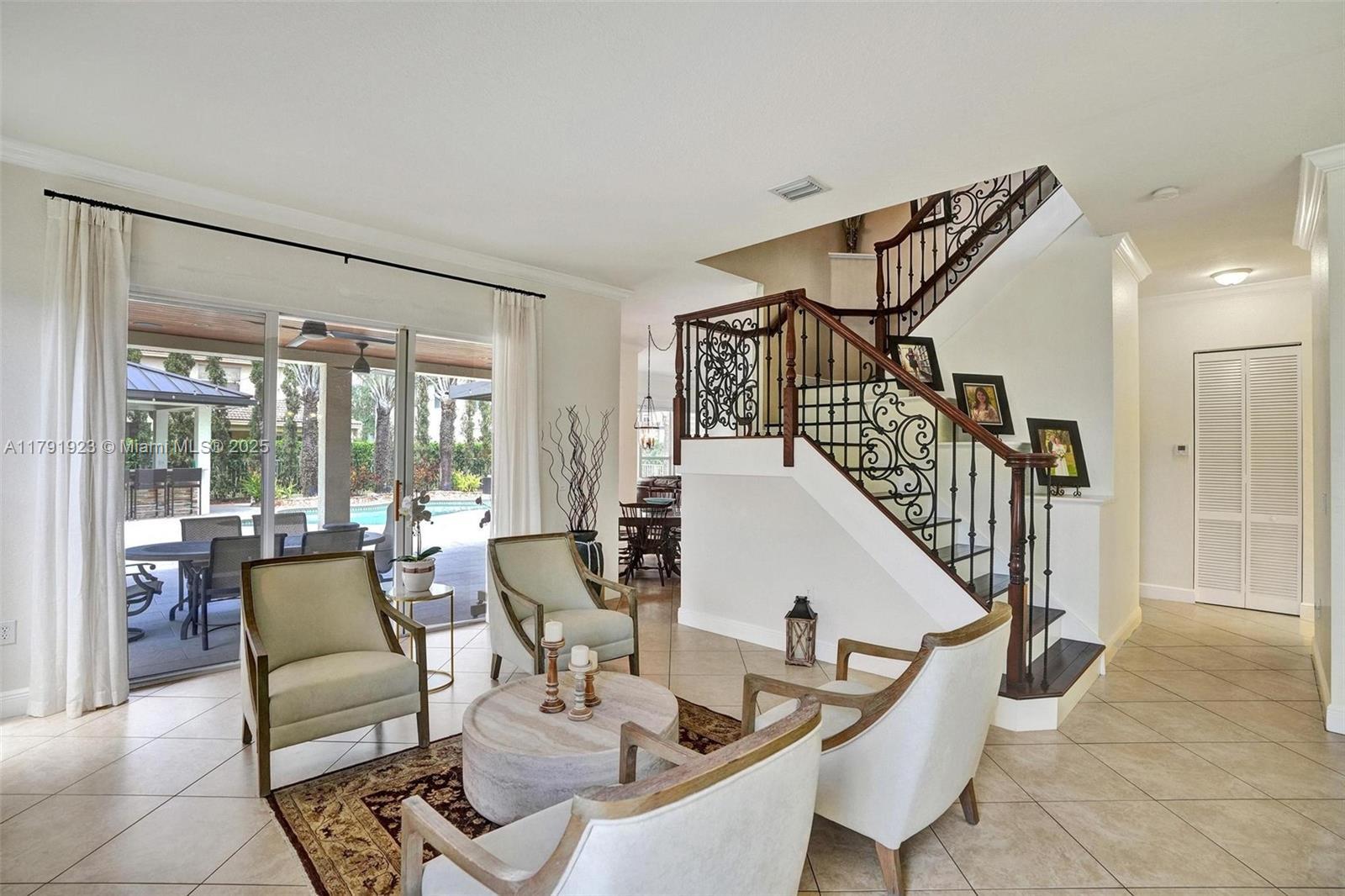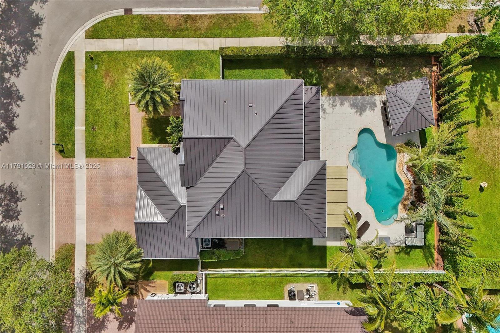 Impeccably updated and maintained by the original owners, this stunning 5 bedroom 3 bath home nestled in the Isles at Sunset Lakes has it all. 2022 metal roof complete with a 25-year transferable warranty. Newer split-zone AC system providing independent climate control for each floor. Beautifully landscaped outdoor space highlighted by a custom-built kitchen and bar, perfect for gatherings. Saltwater pool system, recently resurfaced and equipped with new components. Enormous master suite featuring dual walk-in closets with built-in storage. Solid wood flooring graces the upper level, while elegant tile flows throughout the first floor. 24/hr manned gates with roaming security. All "A" Schools.