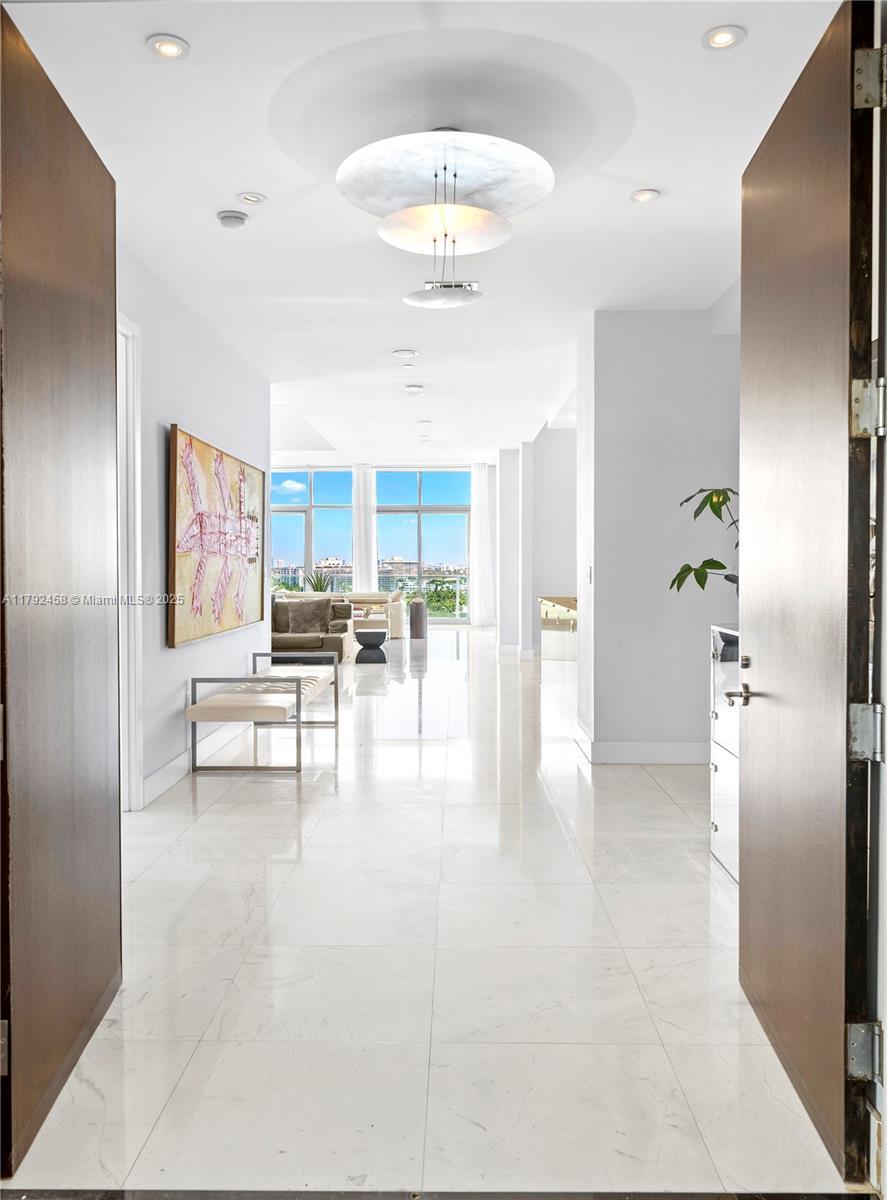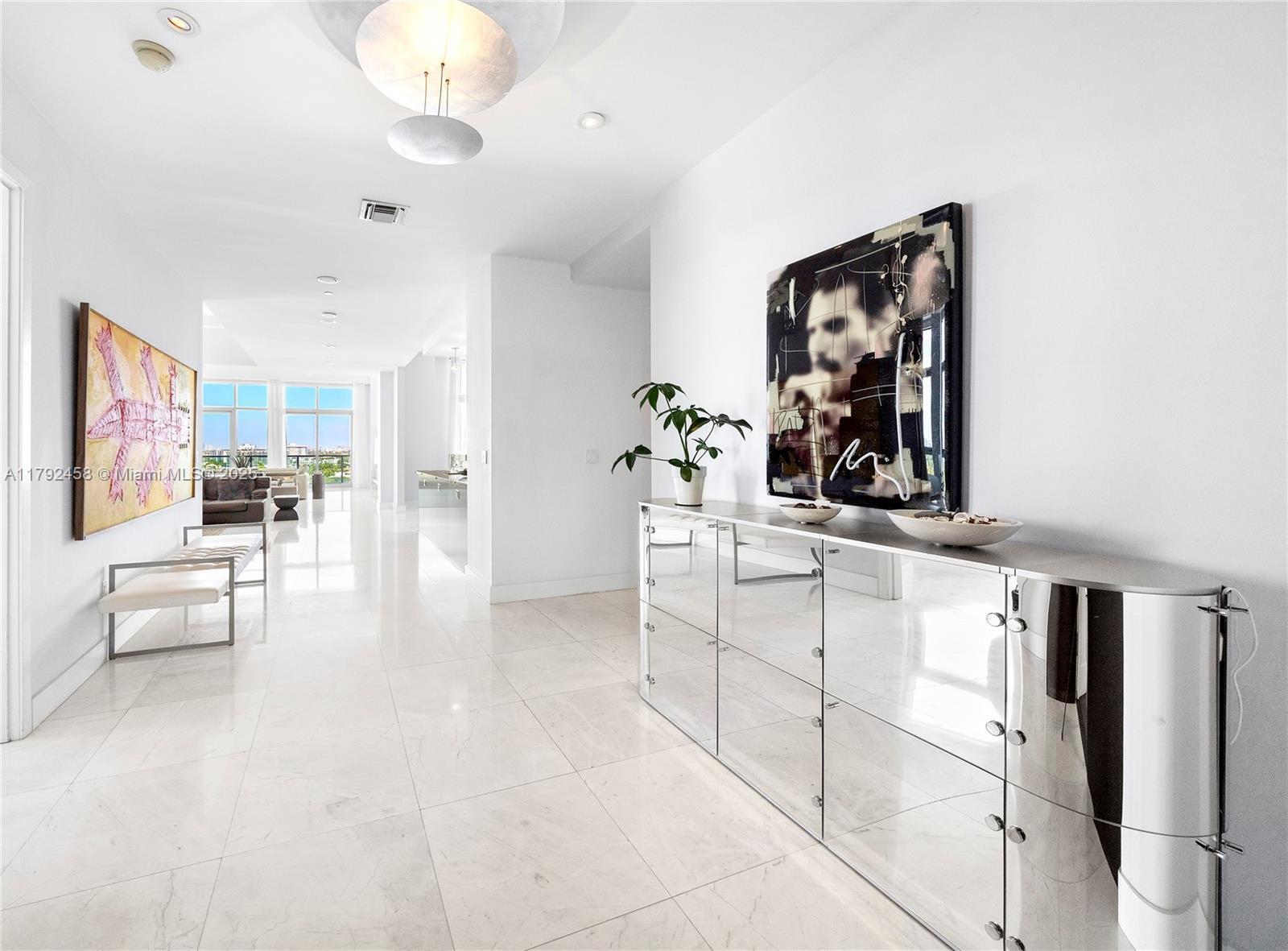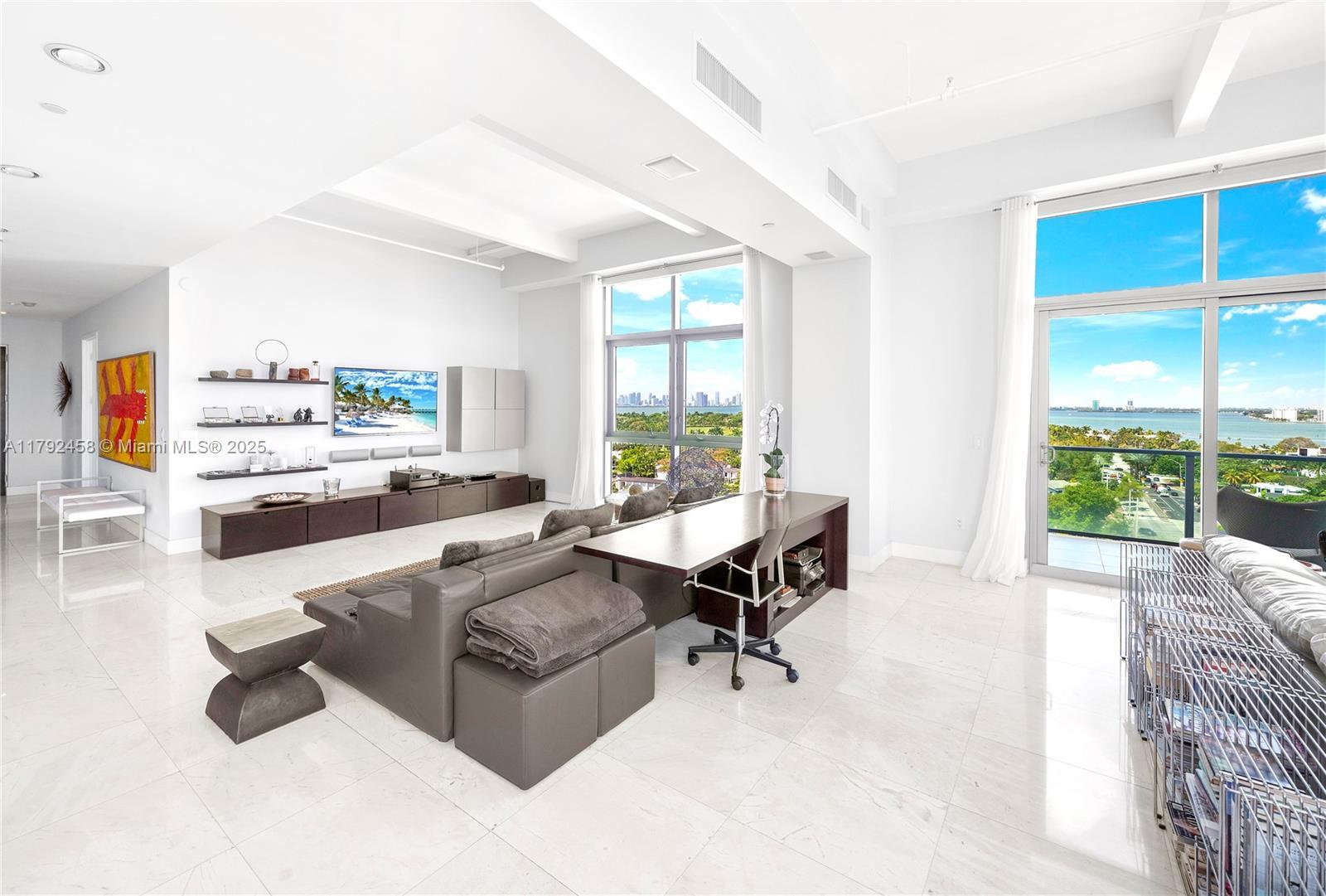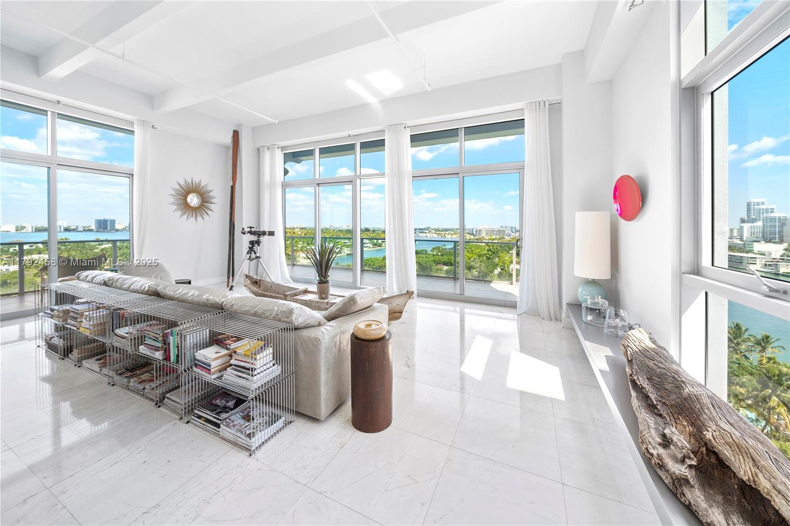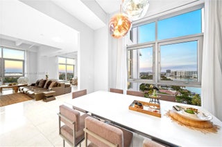 Undeniably the best residence at Aqua, the 1001 is a stunning, sun-lit lower penthouse where modern luxury meets breathtaking views. 3,321 SF of elegant living space plus 420 SF of wrap-around terraces. This 3-bedroom and 3.5-bathroom residence boasts soaring 14-foot ceilings, expansive walls of glass, and an open, airy ambiance that invites natural light to fill every corner. Enjoy sweeping views of the iconic Miami skyline, ocean, and Intracoastal from every room. Featuring bright and extremely spacious living areas, marble floors, and sophisticated furnishings. Three parking spots. Two large dogs are allowed. Aqua Allison Island is an exclusive 8.5-acre private island community with world-class amenities set amidst lush gardens. In the heart of Miami Beach, steps away from the beach.