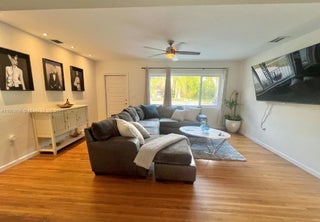 Ready to move in... HUGE 15,000 sq.ft. yard and plenty of room for outdoor entertaining! Gorgeous home in the desirable Griffing Park Estates neighborhood. Impact windows and doors throughout. Open floor plan with nice-sized bright and cheerful kitchen, is freshly painted inside and out, with updated central A/C Various mature fruit trees shade and private lush landscaping create a retreat, perfect for true Florida living! Primary bedroom has bathroom ensuite. Split bedroom plan, and separate 3rd bedroom makes a great home office too. Minutes to Miami Beach, 30 Minutes to MIA or FLL airports. Available for short term. Please note that the garage does not come rented with the house.
