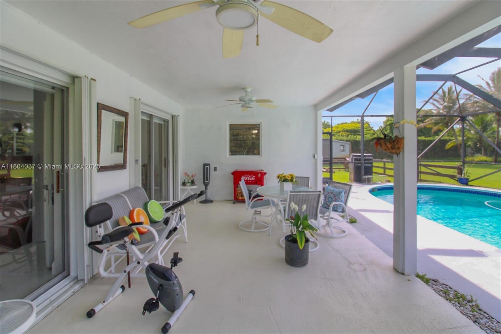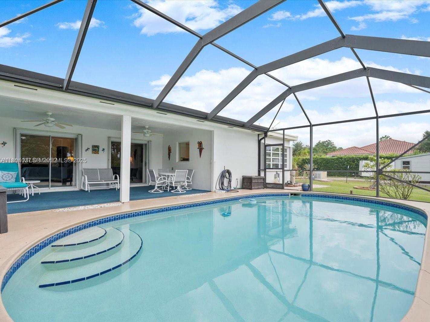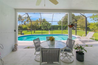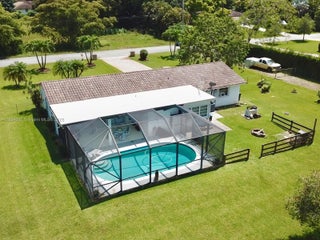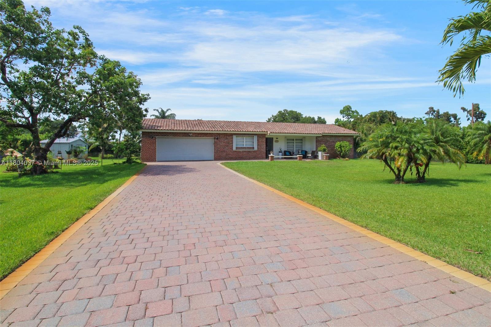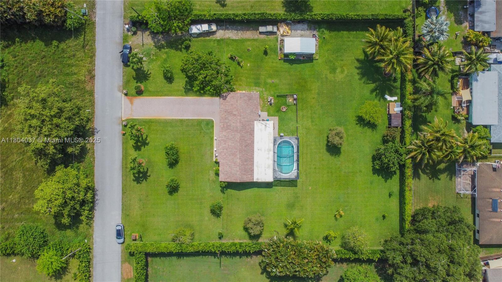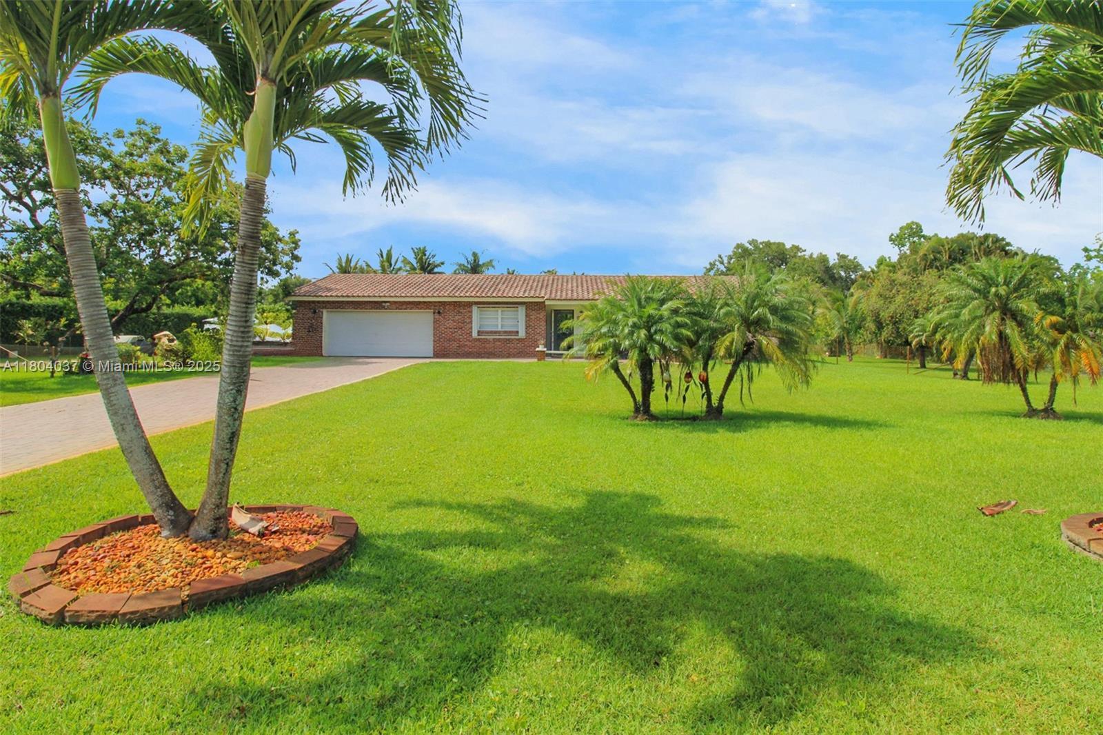 Stunner one-acre lot in Davie offers plenty of space to expand this cozy 2/2 single family with screened pool. The one-story home has split floor plan, master bedroom with walking closet, hurricane impact windows, accordion shutters and impact doors. The screened backyard area offers a separate covered area so you can enjoy the pool without getting sunburned. The oversized lot features lush tropical landscaping, with fruit trees including coconut and mango trees. Storage Shed 24x12 offers extra storage space/workshop. 2 Car garage and super long driveway fit up to 6 cars and additional space to park your boat, RV, or trailer. No HOA! A hardwired generator for the whole home. New A/C, pool equipment and water softener. Close to I-595, restaurants, and shopping. Seller is highly motivated!