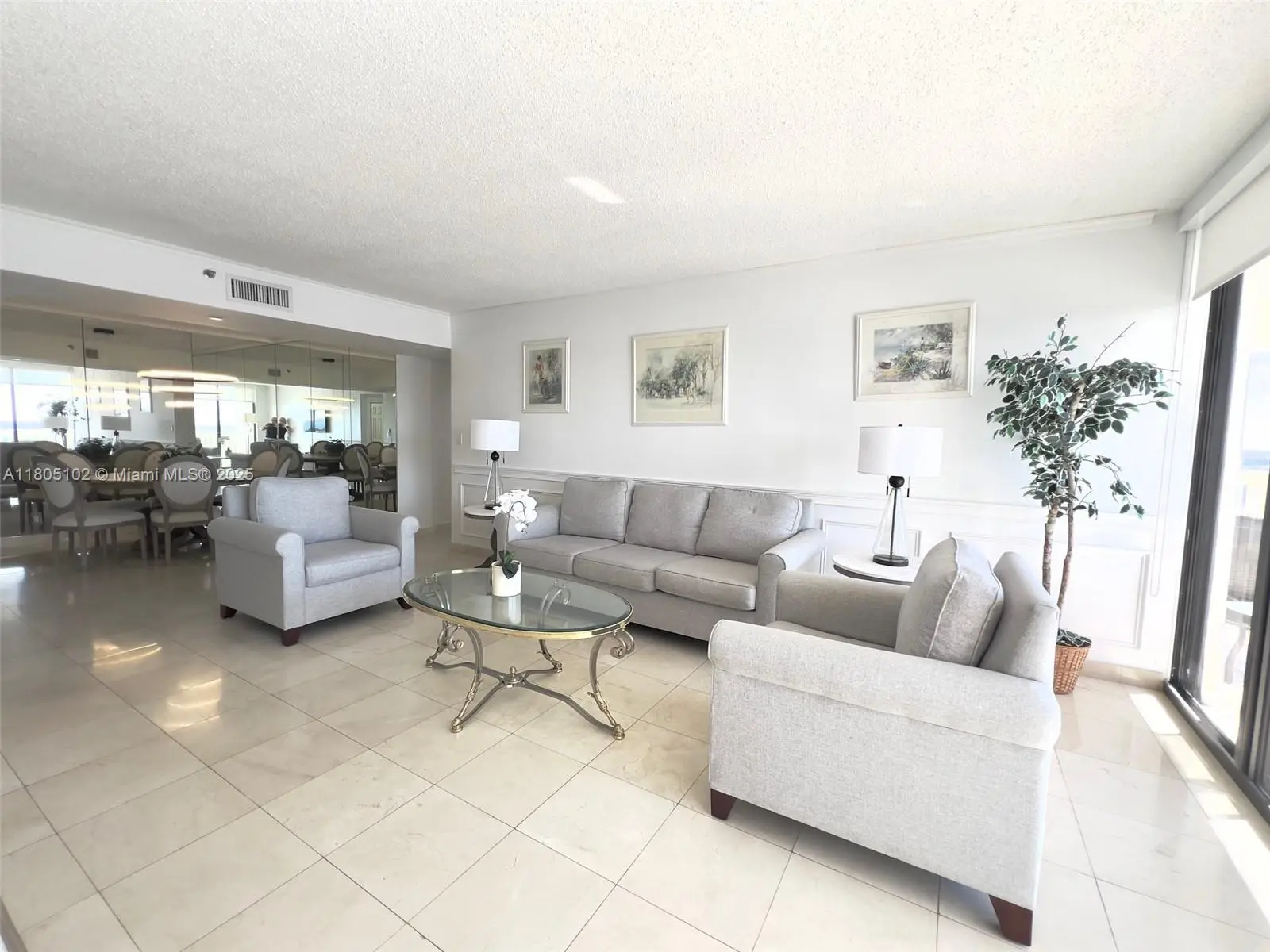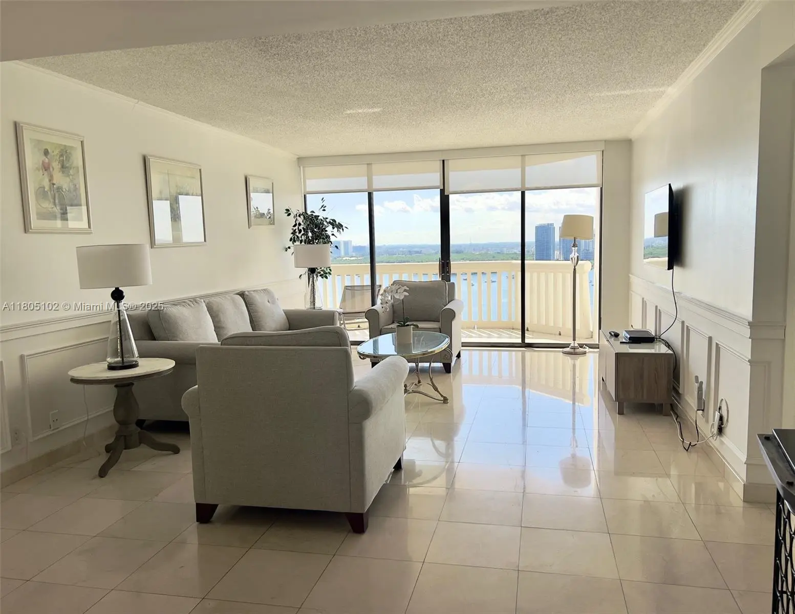 Furnished 2/2 with views of the lagoon down to the City of Miami. Comes with a Spa membership. New furniture. Available for yearly rental as of May 1 2026.