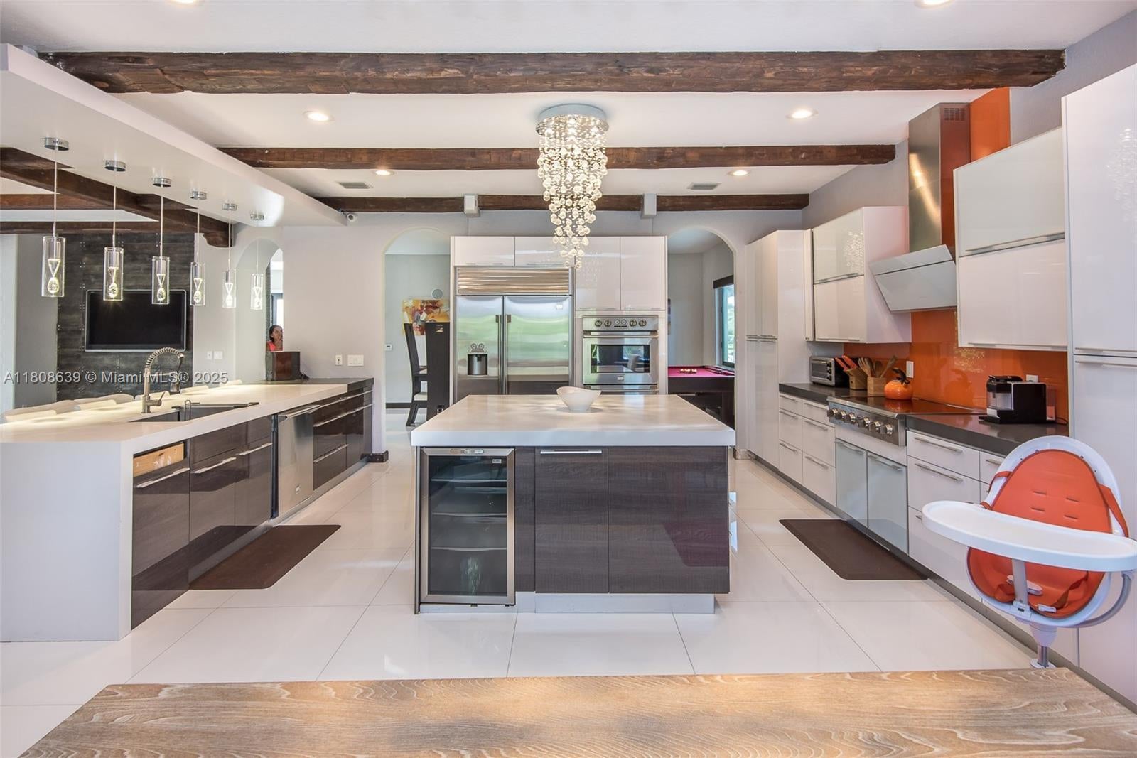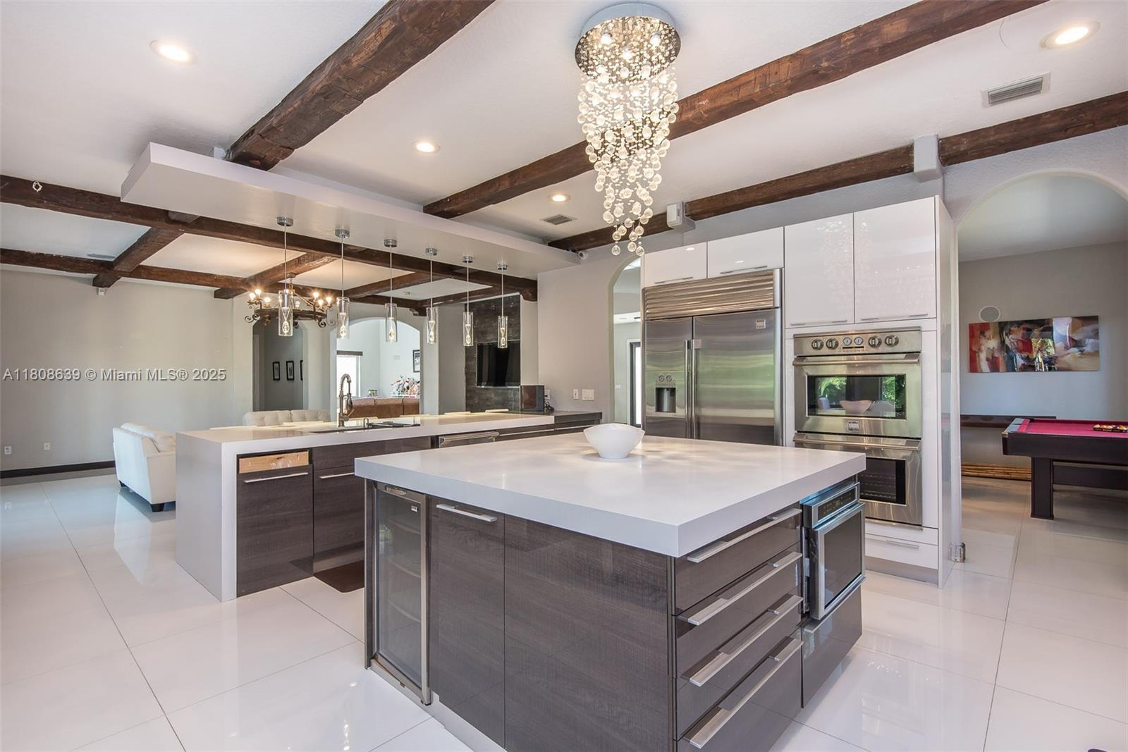 Truly one of a kind. In the gated community of Cutler Cay, this 6/5 offers a modern and upscale design. It has hurricane impact windows and has been completely renovated with the latest fixtures. The spectacular Italian kitchen has Monogram SS appliances, quartz countertops, a glass full backsplash, an island, and an eat-in area. The spacious primary suite has expansive walk-in closets. Marble patio deck and gazebo with built-in BBQ and bar area with quartz countertop, Speakers throughout the house, and electric shades. The HOA includes alarm, Internet, cable, lawn maintenance, access to the spectacular Clubhouse with gym, heated pool, tennis and basketball court, and kids' playground. It is very easy to show.