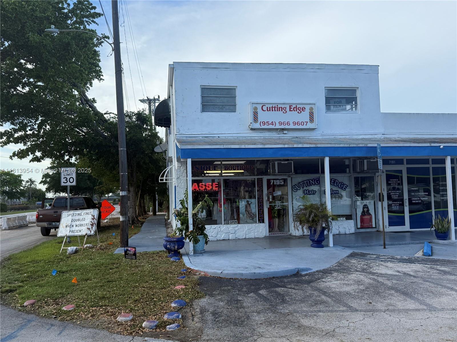 Excellent investment or owner-user opportunity located in a centrally situated shopping center. This corner mixed-use building features two ground-level commercial spaces, currently operating as a clothing store and a hair salon, each rented for $1,100 per month, both are month-to-month, offering immediate rental upside. The second floor features a spacious 2-bedroom, 1-bath unit with an estimated rental value of $2,000/month, as well as a separate studio unit that is currently rented. All units are equipped with central A/C. A low-maintenance property, as the city handles exterior maintenance. The city is currently installing new sewer infrastructure, with completion expected next year. Ideal to live and work on-site and capitalize on multiple income streams in a high-traffic area.