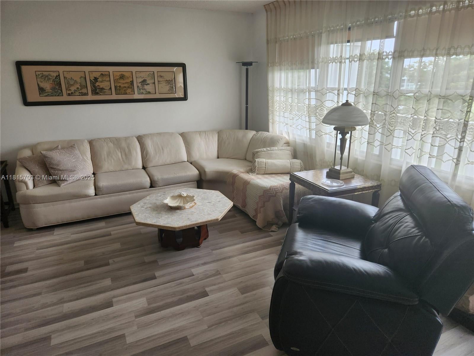 Don't miss this opportunity! Impeccably maintained 1 bedroom, 1.5 bathroom condo located on the 4th floor of the coveted Cambridge G, directly across from the main clubhouse—magnificent lake views from the Florida room. Fully furnished, this condo features a bright kitchen with updated cabinets and appliances. The living and dining areas were recently painted for a fresh, updated look. Air conditioning (December 2023). Located in a well-maintained building with laundry facilities and a soon-to-be-renovated BBQ area. This vibrant 55+ community offers pools, tennis, pickleball, billiards, miniature golf, live theater, a fitness center, and more. All just minutes from restaurants, grocery stores, and stunning beaches.