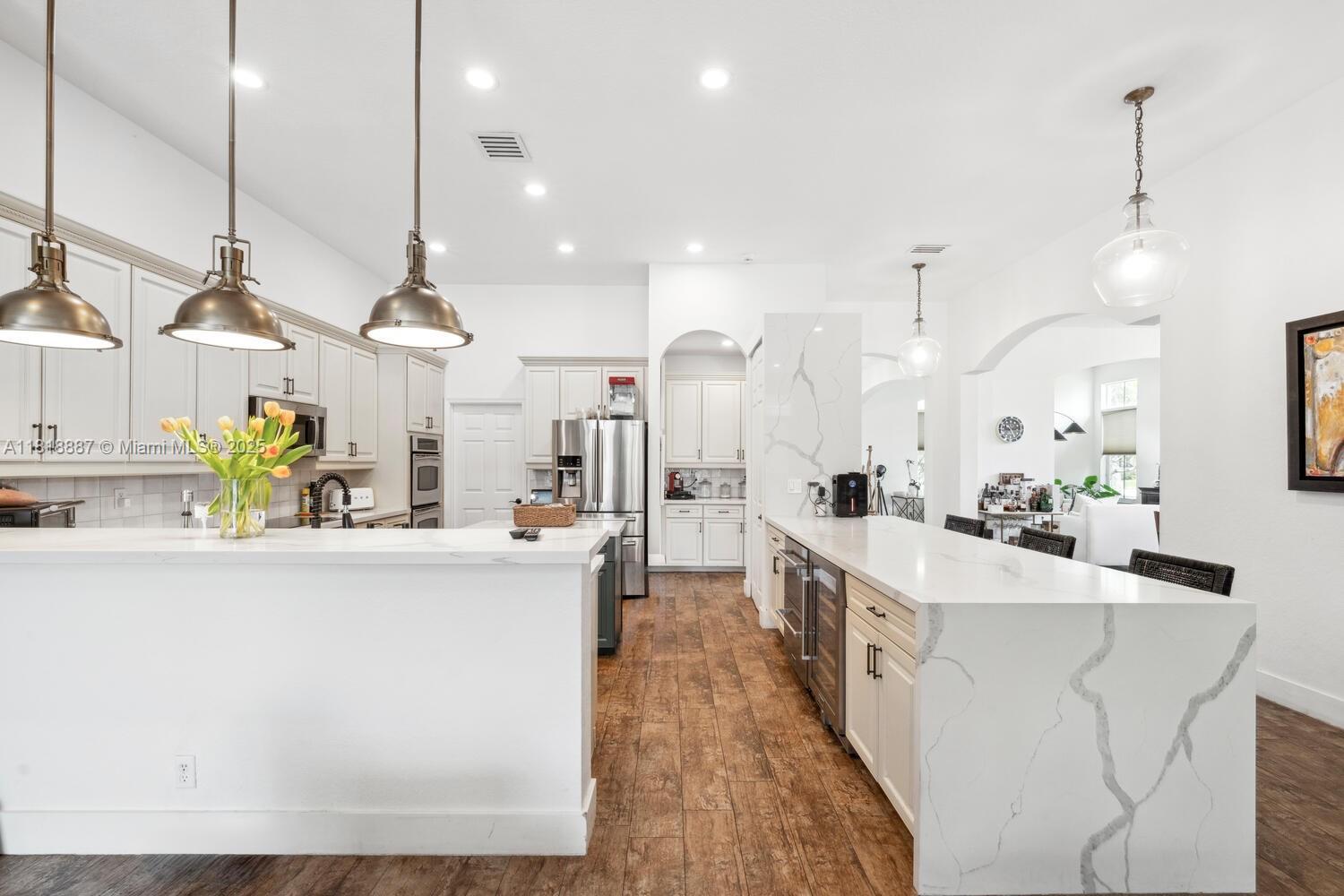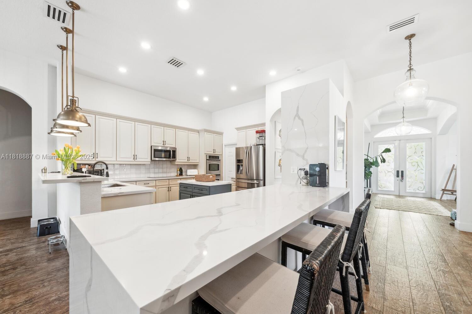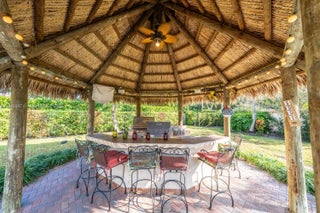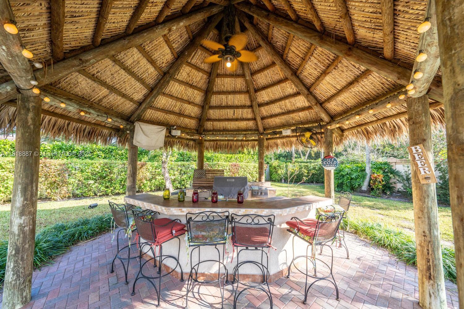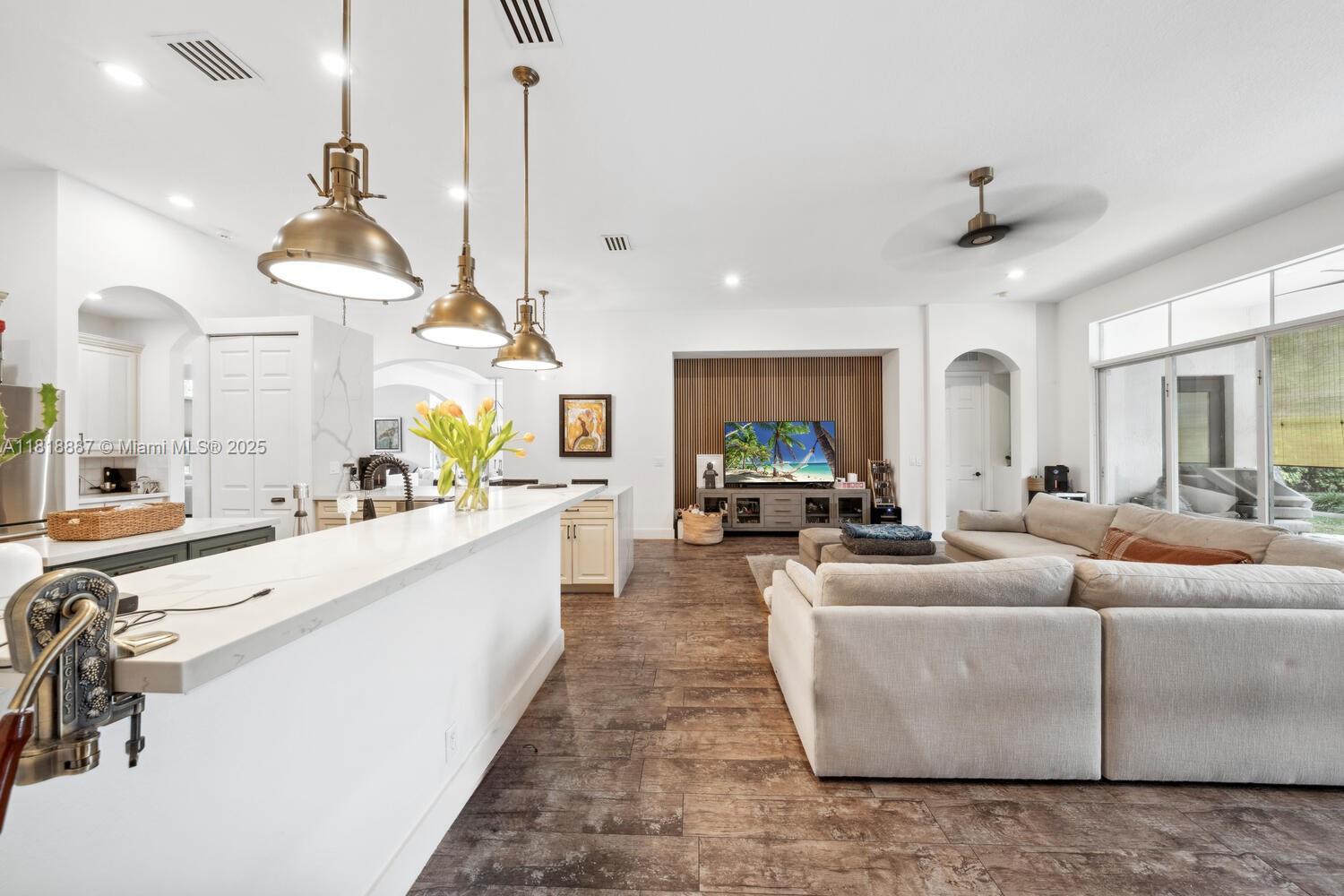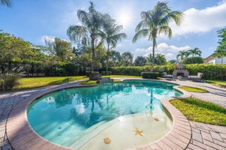 Luxury living in gated Hibbs Grove in Cooper City. This 4 bed, 3 bath pool home sits on an expansive 22,500_ SF lot (over 1/2 acre lot) with desirable triple split floor plan, 3 car garage, and spacious open concept layout. Featuring remodeled kitchen with quartz countertops and waterfall, upgraded tile flooring, modern LED lighting, and curated interior designed by Joanna D. Home includes screened patio, pool, custom tiki hut with outdoor kitchen and bar seating, built in grill, fridge, full electric and water. Close to top schools including Cooper City H.S. , Griffin Elementary, University School NSU, American Heritage, Archbishop McCarthy, and more.Lu