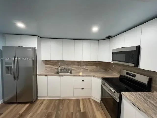 This bright and spacious 2-bedroom, 2-bathroom corner unit is located on the top floor, offering privacy and peaceful living. The thoughtfully designed split-bedroom layout features walk-in closets in both bedrooms, ideal for added storage and comfort. Enjoy brand-new floors and modern appliances throughout. One assigned parking space is included, along with plenty of guest parking. The well-maintained, gated building features a secure entrance and surveillance cameras for added peace of mind. Maintenance fees include reserves. Nestled in a quiet residential neighborhood near Barry University, with convenient access to I-95 and Biscayne Blvd—this home combines comfort, security, and accessibility.