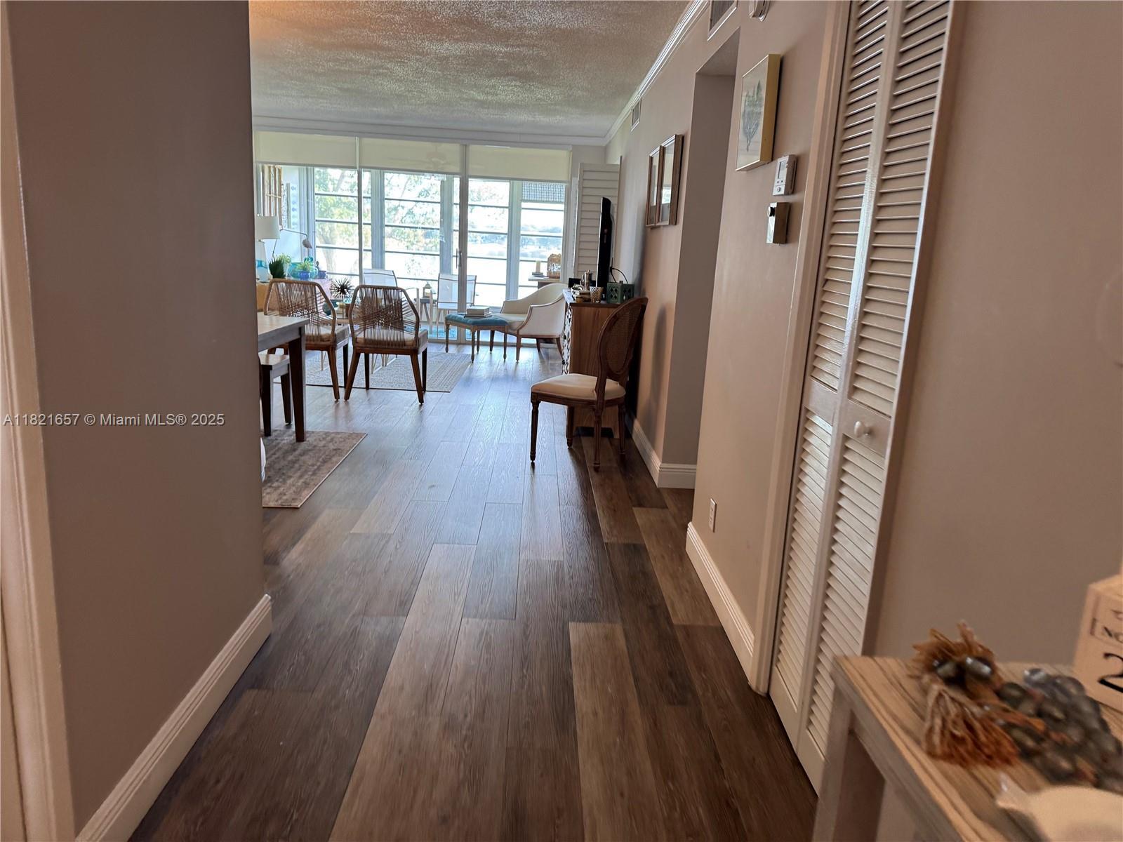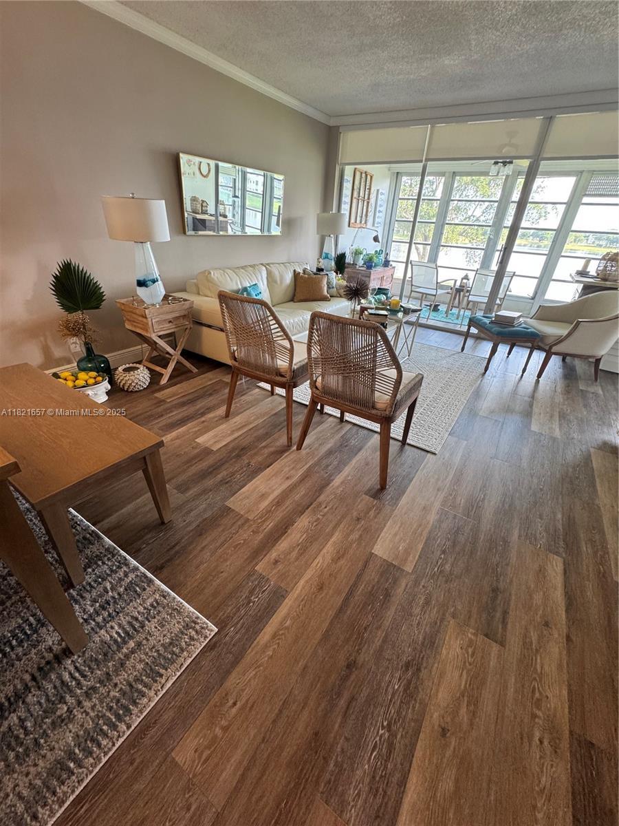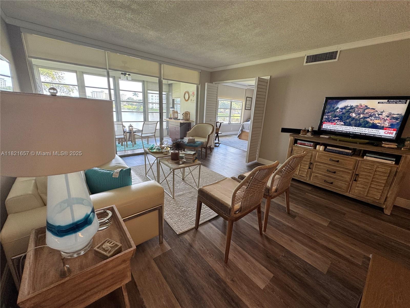 Beautiful unit on the second floor, small boutique building well maintained. Spacious 2-bedroom 2 full bathroom fully updated, wood floors throughout, great closet space, peaceful and quiet and amazing water views from mostly every room. Enclose balcony to use as extra space, kitchen with granite counter tops, eat-in kitchen, washer and dryer inside unit, AC about 3-year-old. Great apartment to call HOME, nice walking areas around, full of trees and flowers. Community pool across the unit. Call listing agent for more info.