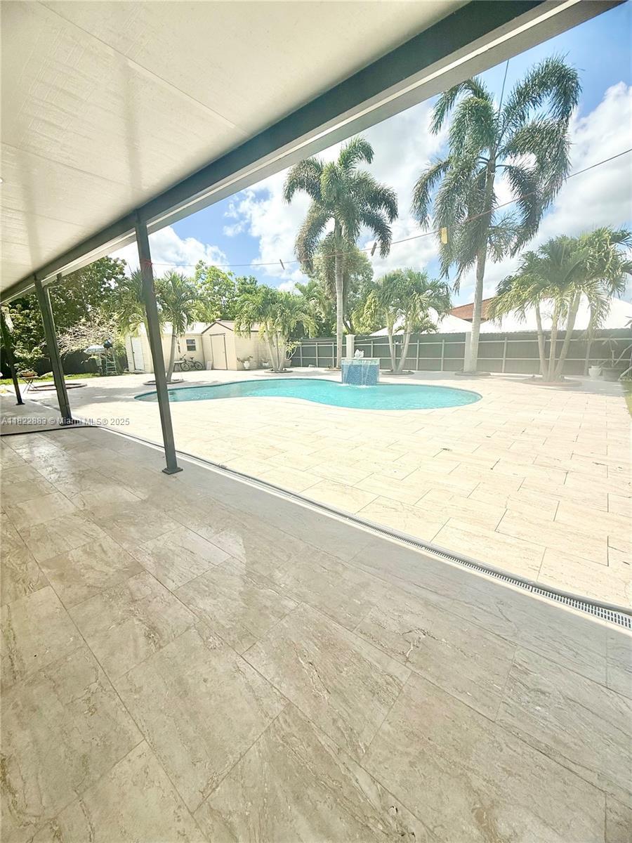 This great corner property features 4 bedrooms & 2 bathrooms, making it the perfect home for your family. Tiled flooring throughout. Step outside and be enchanted by your very own private paradise. Dive into the sparkling pool or relax under the covered terrace. The extended circular driveway provides ample parking for guests. Located in a desirable neighborhood, this property offers the perfect blend of comfort and convenience. Don’t miss your chance to own this slice of paradise! Schedule a showing today and experience the magic for yourself!